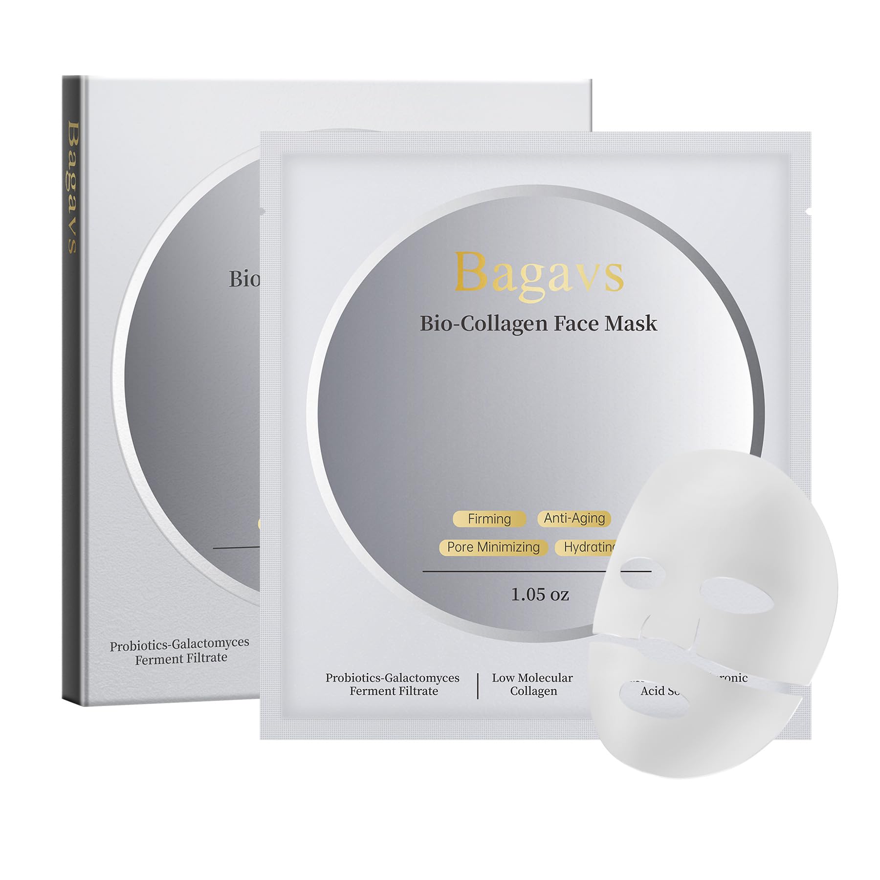 Bio Collagen Face Mask Overnight Hydrating Mask for Skin Care, Pore Minimizing, Anti-Aging, Pack of 4