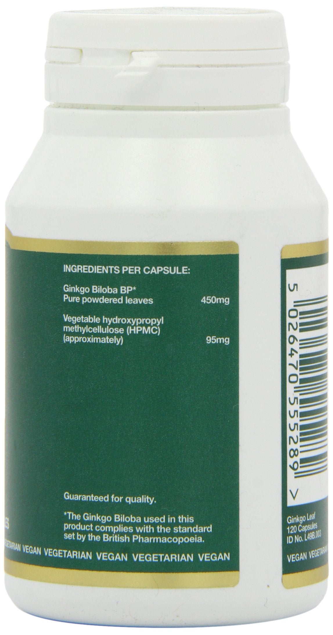Bio-health Bio-Health Ginkgo Leaf 450mg Pure Herbal Food Supplement, Supports Blood Circulation, Mental Performance and Boosts Energy Suitable for Vegetarians and Vegans, Additive Free, 120 Capsules