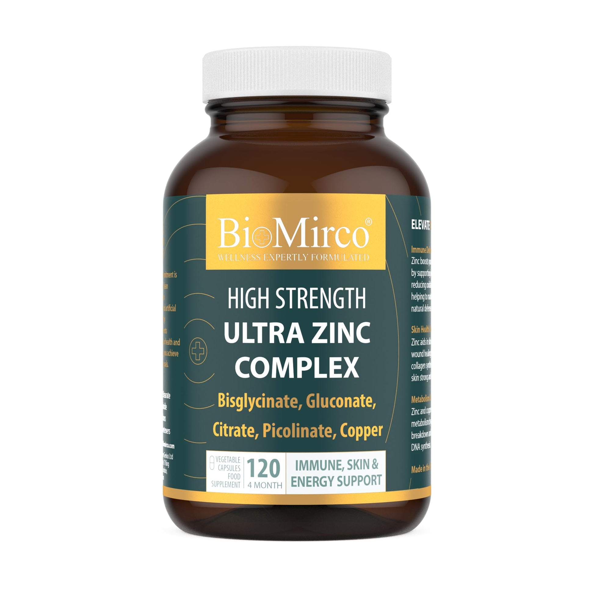 Bio Mirco High Strength Ultra Zinc Complex, 120 Premium Capsules, Immune System, Cognitive Function, Potent Dose, Made in The UK