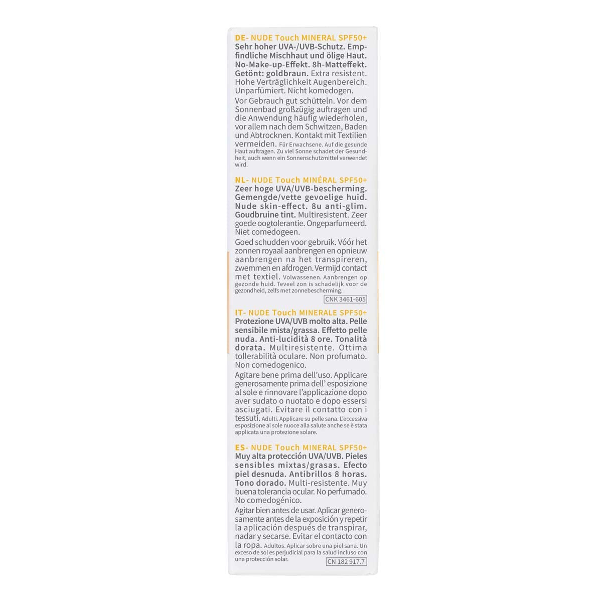 Photoderm Nude Touch SPF50+ solaire protecteur 40 ml doré est un soin solaire perfecteur de très haute protection (SPF 50+), spécialement formulé pour les peaux mixtes à grasses.