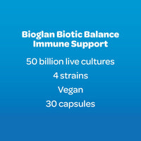 Bioglan Biotic Balance 50 Billion CFU, with Vitamin C for Digestive Health and Immune Support, Super Strength, 4 live strains, fridge free, one month supply - 30 capsules