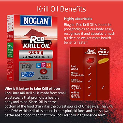 - Bioglan Red Krill Oil 500mg is an advanced, highly absorbable source of Omega-3 with an Extra Strength dose of 500mg Pure Krill Oil