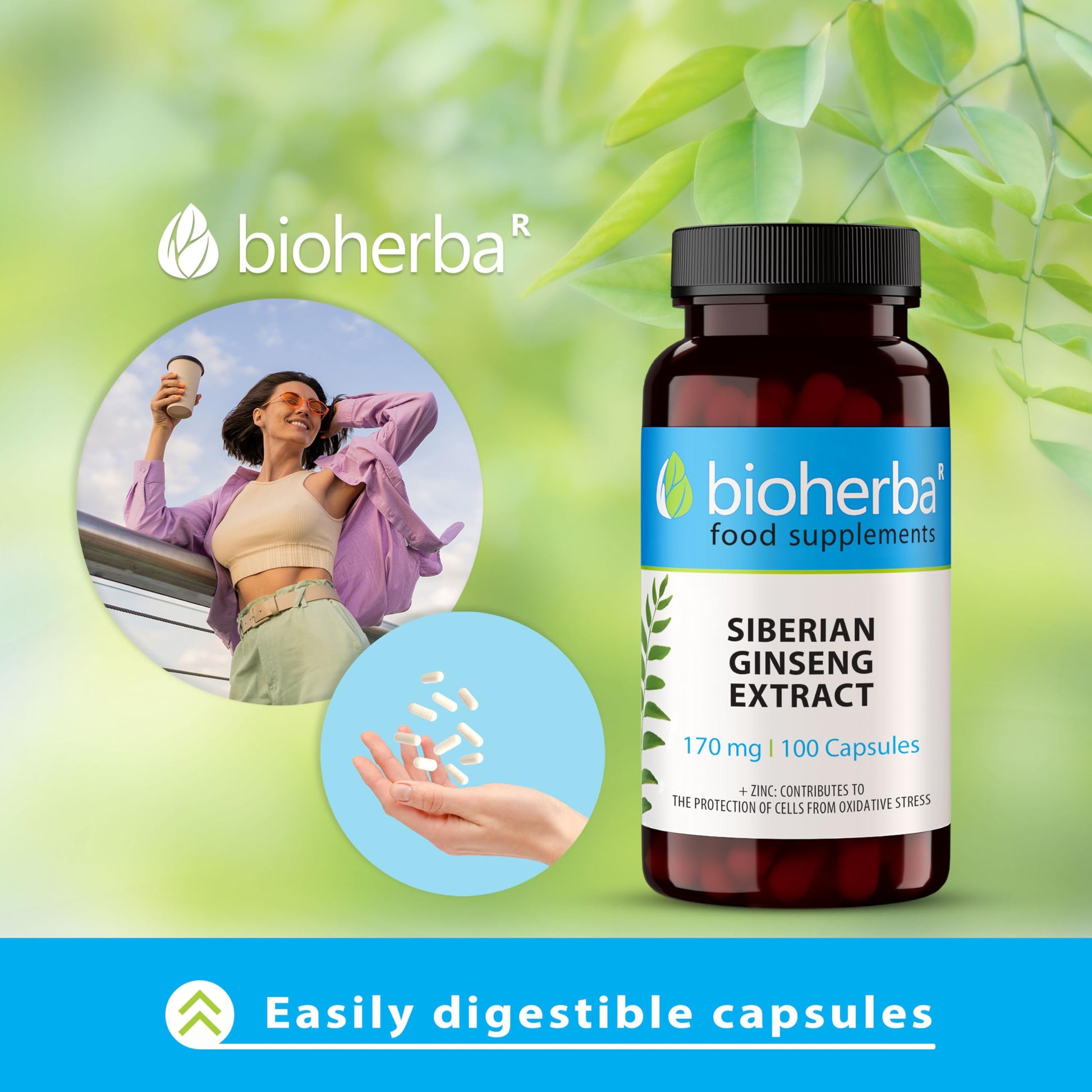 BIOHERBA Siberian Ginseng 170 mg, 100 Capsules - Supplements for Natural Energy Boost, Stress Relief & Immune Support - Herbal Adaptogen Supplement