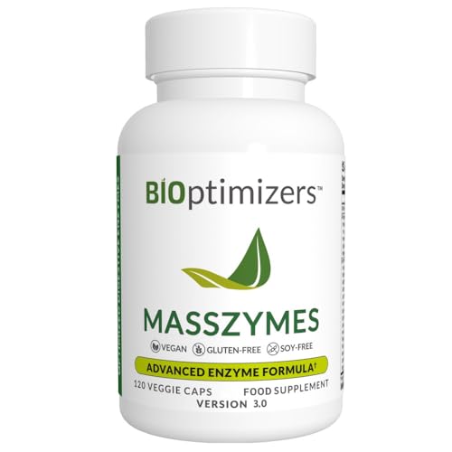 BiOptimizers MassZymes - Complete Digestive Enzymes Supplement for Gut Health - Bloating Relief for Men and Women - Lipase Amylase Bromelain Digestive Enzymes (120 Capsules)