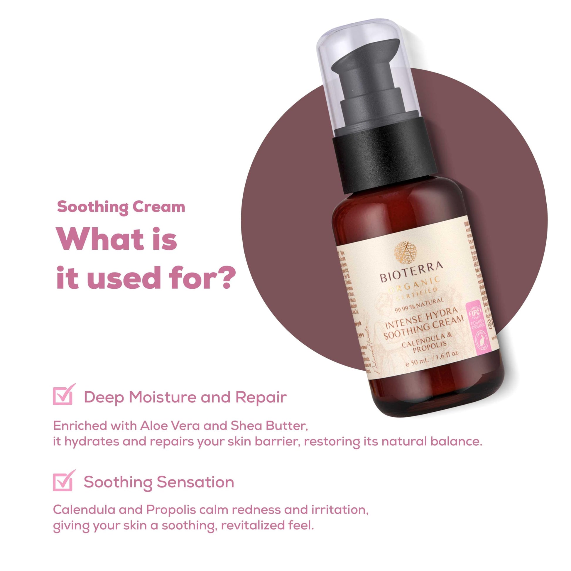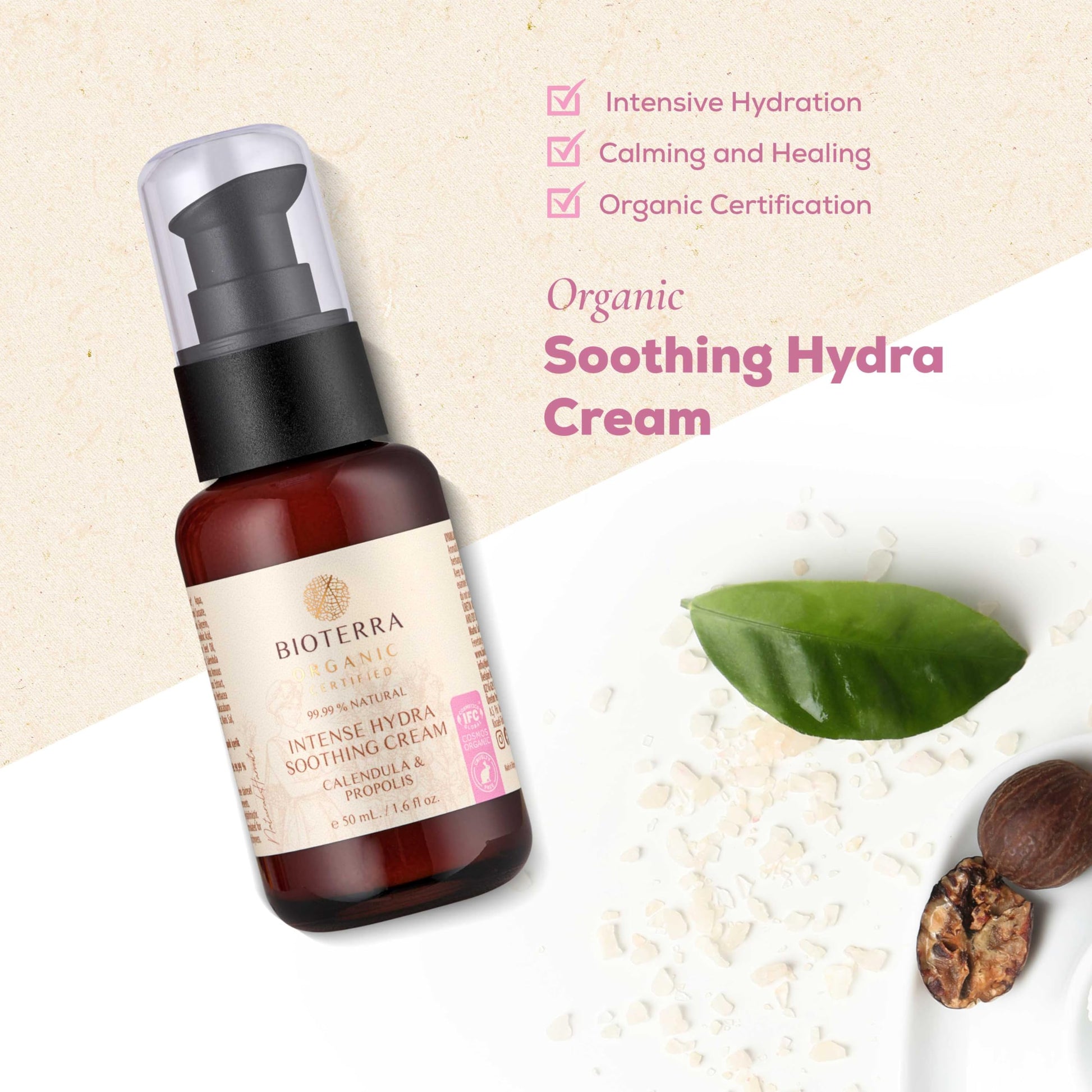 Bioterra Organic Intense Hydra Soothing Cream, with Calendula and Propolis, Natural Face Moisturiser, Antioxidants For Glowing Skin, 50 ml