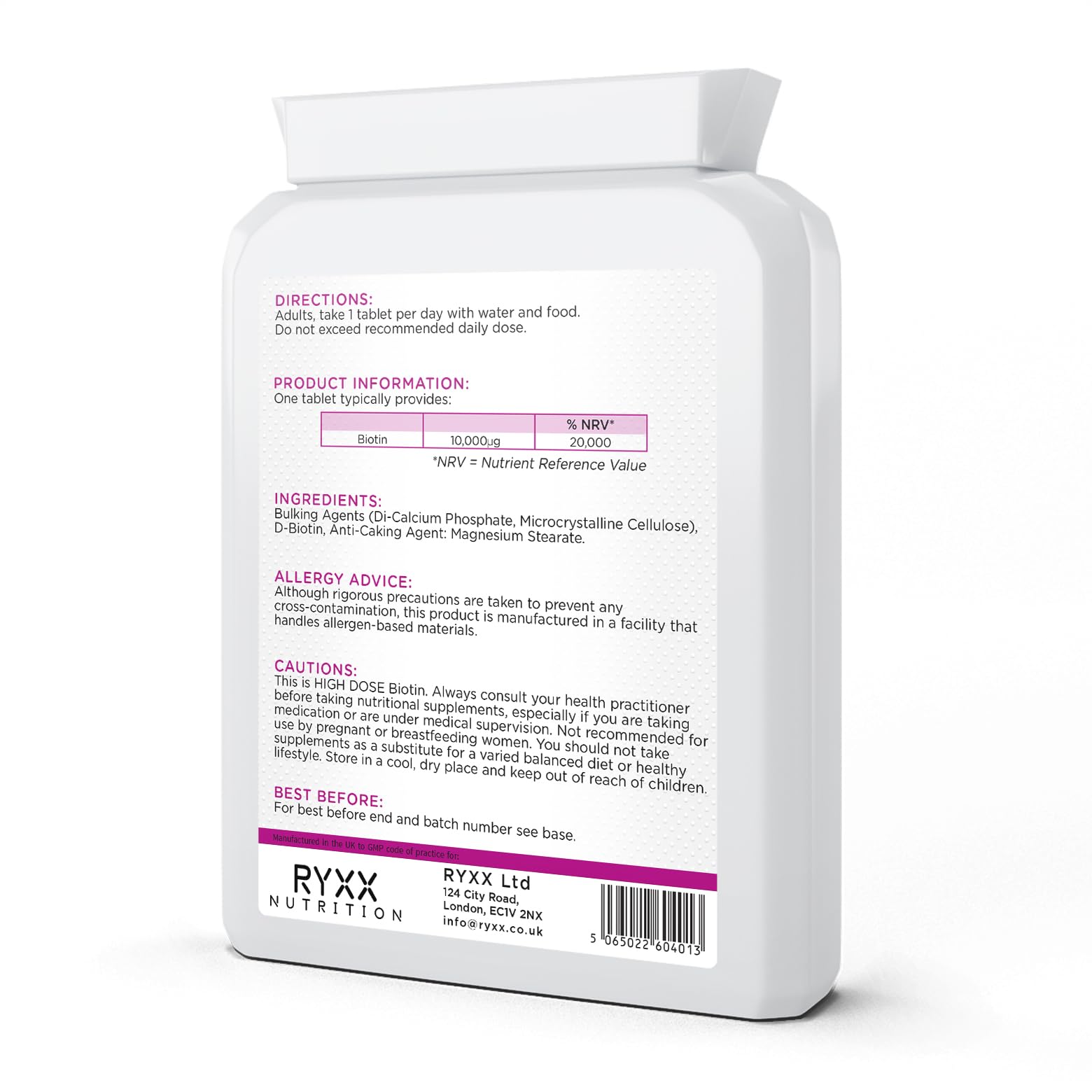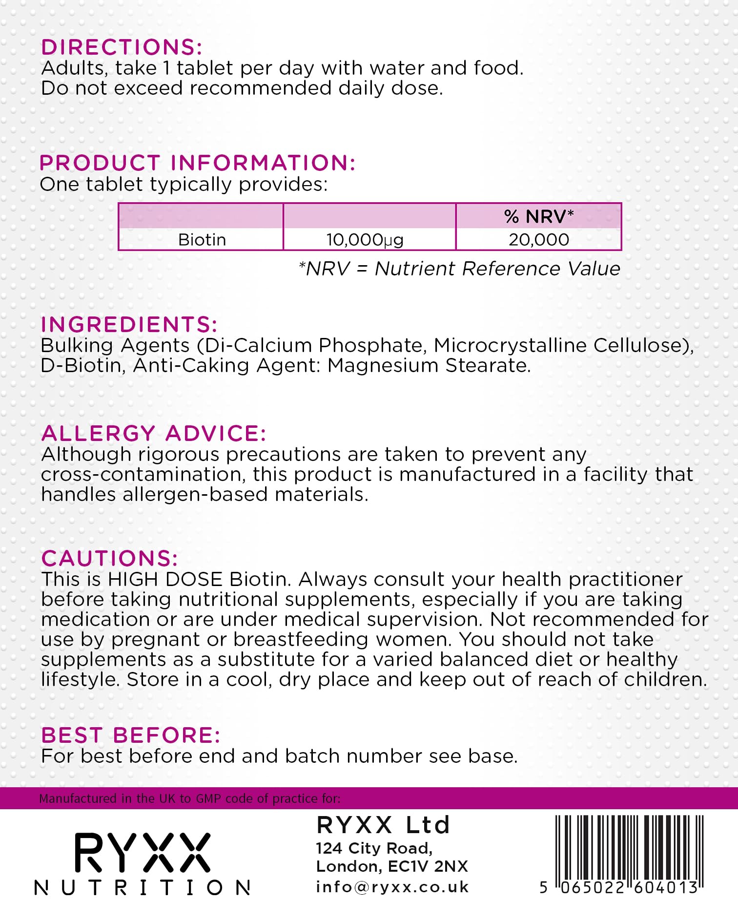 UNLEASH YOUR NATURAL BEAUTY - Introducing Purolabs Biotin Complex, the ultimate solution for healthier hair, skin, and nails. Our high-strength formula is specifically designed to nourish and enhance your natural beauty from within. POTENT BEAUTY BOOST - Experience the power of 10,000ug of maximum strength biotin in every serving of our Biotin Complex. Biotin, is the key to promoting healthy hair and nails by boosting keratin production. Say hello to longer, stronger, and shinier locks and nails that dazzle. SCIENCE-BACKED FORMULA - Our expertly formulated blend includes not only biotin but also other essential nutrients that work together to rejuvenate your hair, skin, and nails from within. With the added benefits of vitamin C, selenium, and zinc, our formula supports overall health and enhances your natural radiance. PURE AND VEGAN-FRIENDLY - We believe in clean and transparent formulations. Purolabs Biotin Complex is vegan-friendly and has a clean label with no hidden nasties. Rest assured that you're nourishing your beauty with a pure and potent daily formula. BEYOND BEAUTY - Biotin's benefits extend beyond hair, skin, and nails. It also plays a crucial role in supporting your metabolism, while vitamin C helps protect cells from oxidative stress. Embrace a holistic approach to well-being with our Biotin Complex. BRITISH-MADE BEAUTY - Purolabs Collagen Complex is our pure formula of hair growth vitamins and nutrients crafted in the UK to the highest quality and safety standards. Our commitment to excellence is reflected in every capsule. With carefully selected ingredients and a focus on purity and effectiveness, our UK-made supplement delivers exceptional results.More Info