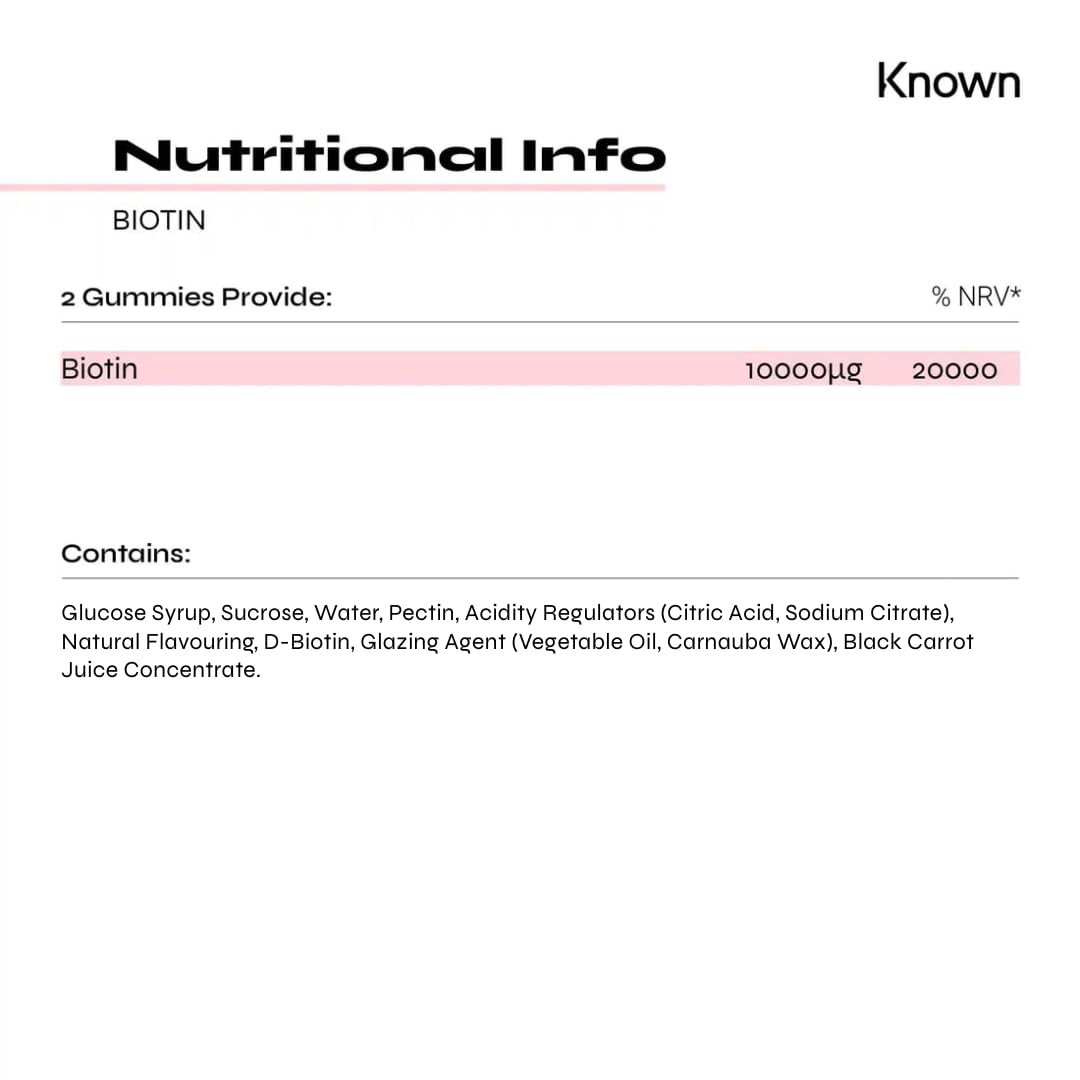Biotin Gummies 10,000 mcg Watermelon Flavoured by Known Nutrition | for Hair, Skin and Metabolism | Watermelon Flavour | 60 Two-a-Day Vitamin Gummies | 10,000μg of Biotin per Serving (Pack of 1)