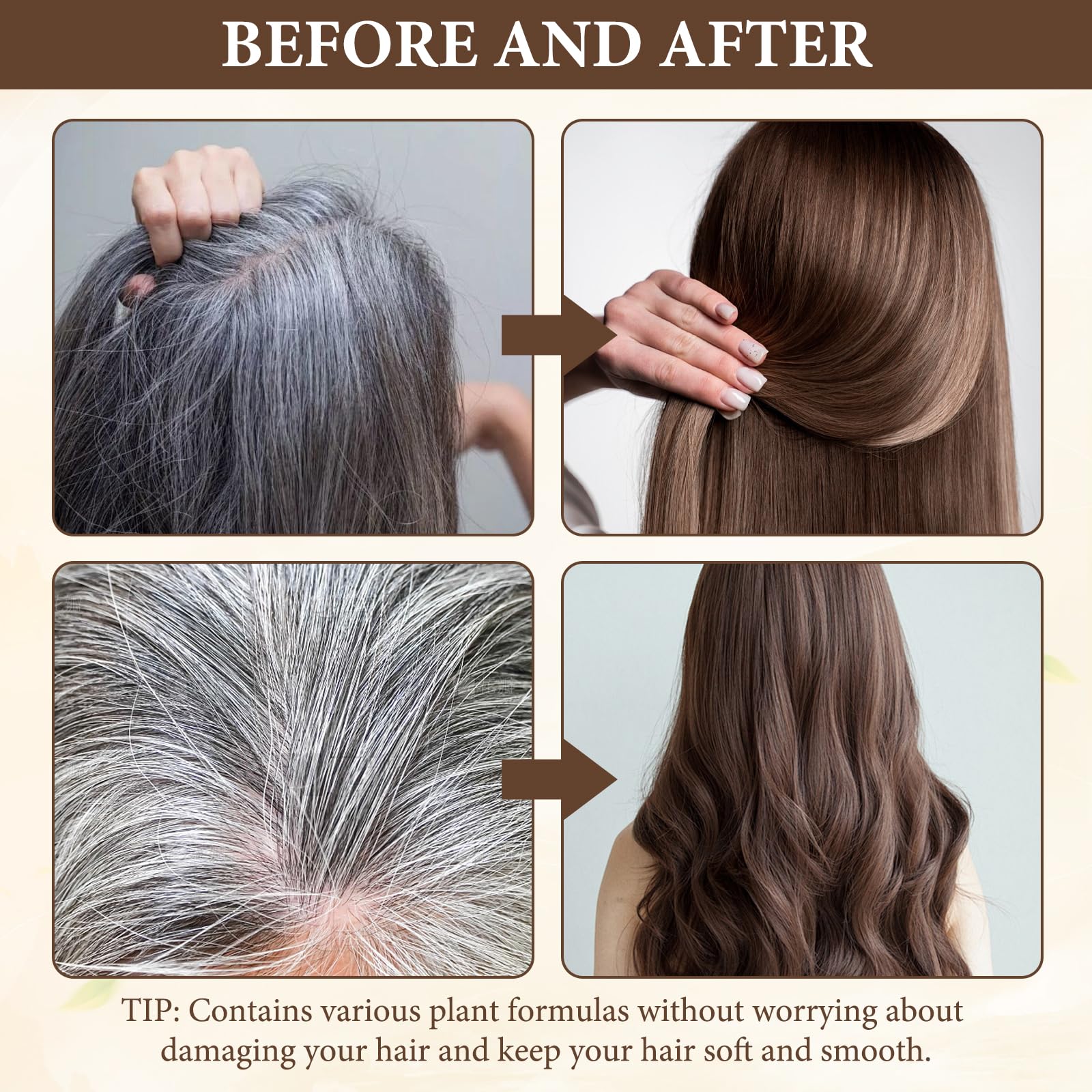 Softens hair, reduces tangles and frizz. Hair dye shampoo makes your hair smooth and silky, showing your personality and charm at will.
