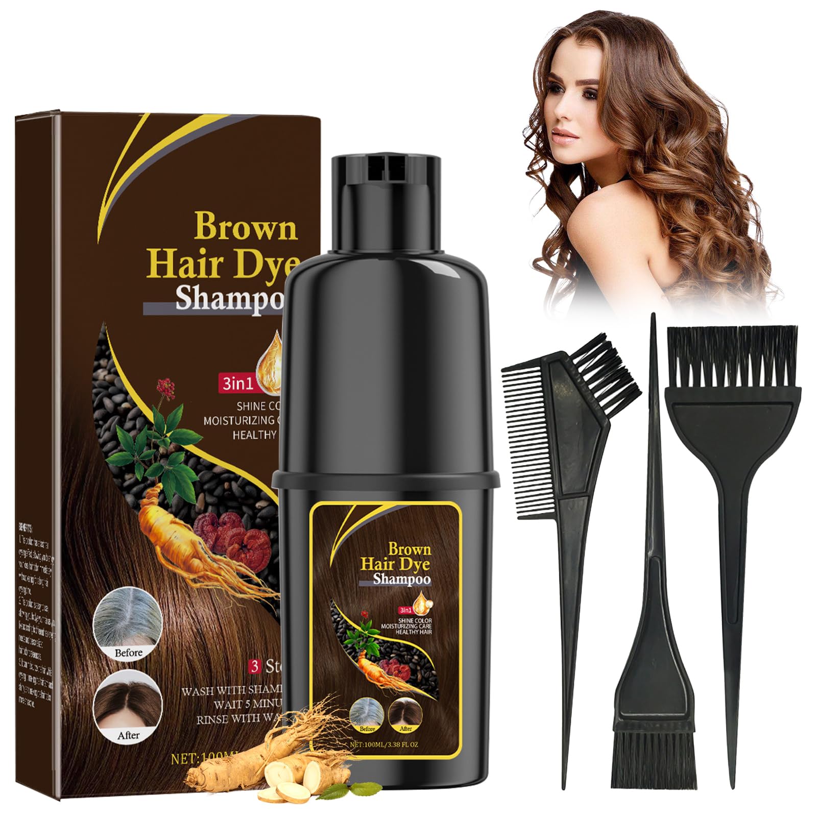 Bisienya 100ml Nova Hair Dye Shampoo For Men & Women Hair Dye Shampoo Nova Hair Shampoo Hair Dyeing Shampoo, Mildly Moisturizing The Scalp, Easy To Change Hair Color (Brown), Comes With 3 Hair Dyeing Combs