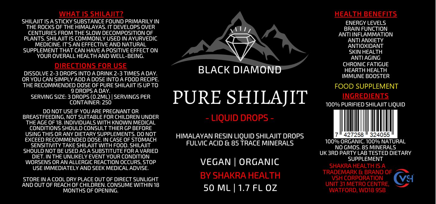 Black Diamond Shilajit Liquid Drops 50ml. Pure Himalayan Strength, Energy, Recovery & Health. Potent & Pure. Natural Fulvic Acid Trace Mineral & Vitamin Complex