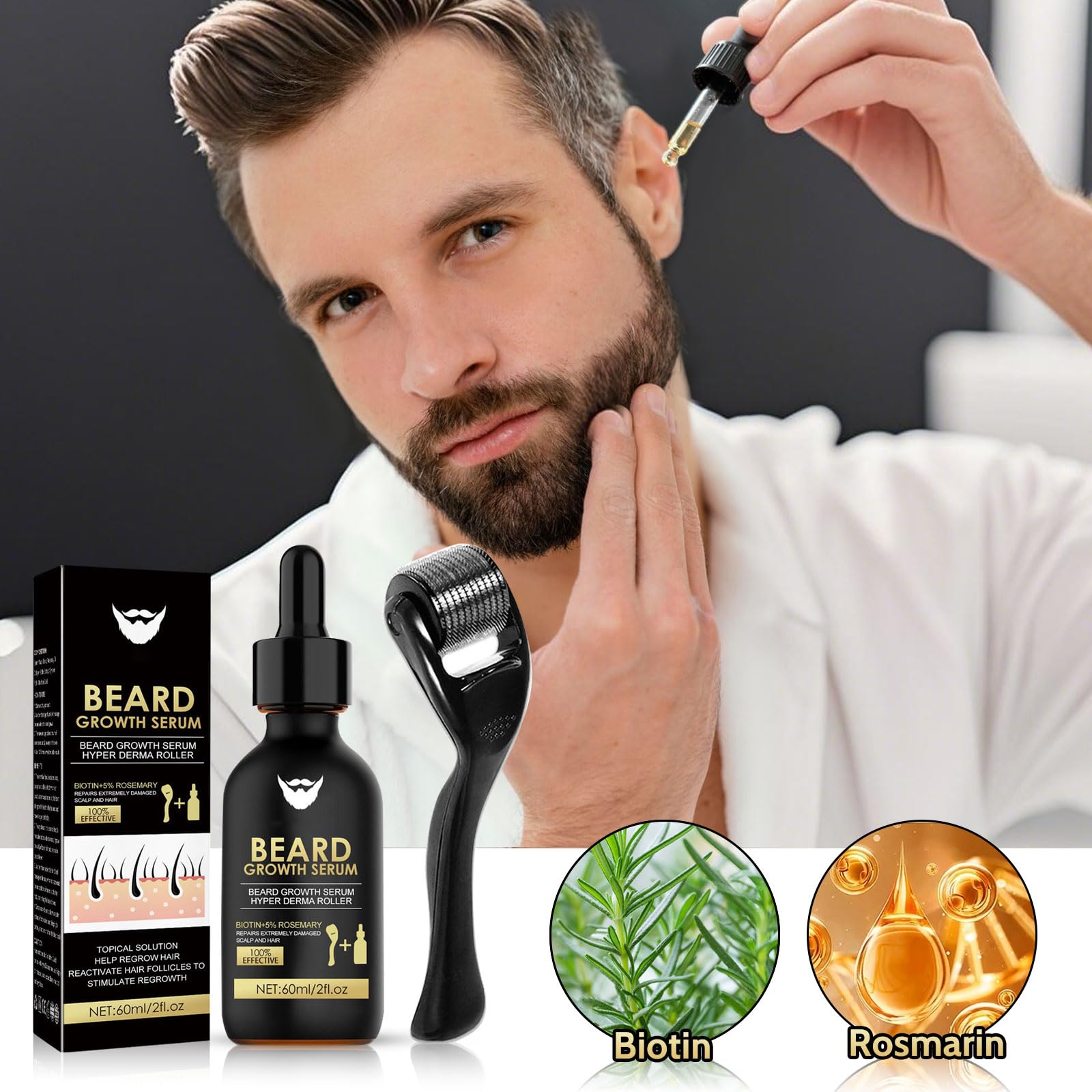 ✔ Kit Includes: 30ml Beard Growth Serum + 0.5mm Derma Roller