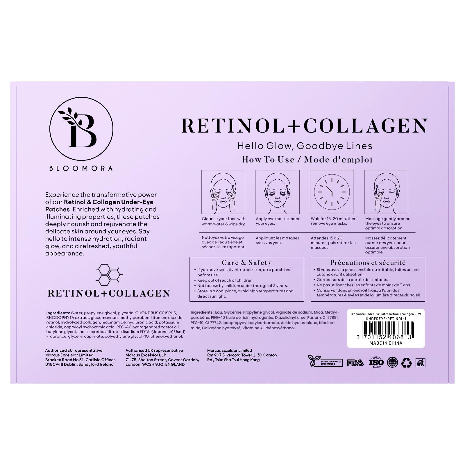 BLOOMORA Retinol & Collagen Under Eye Gel Patches (30 Pairs) | Eye Masks for Puffy Eyes | Under Eye Patches for Dark Circles & Puffiness | Under Eye Mask for Eye Care | Collagen Eye Patches
