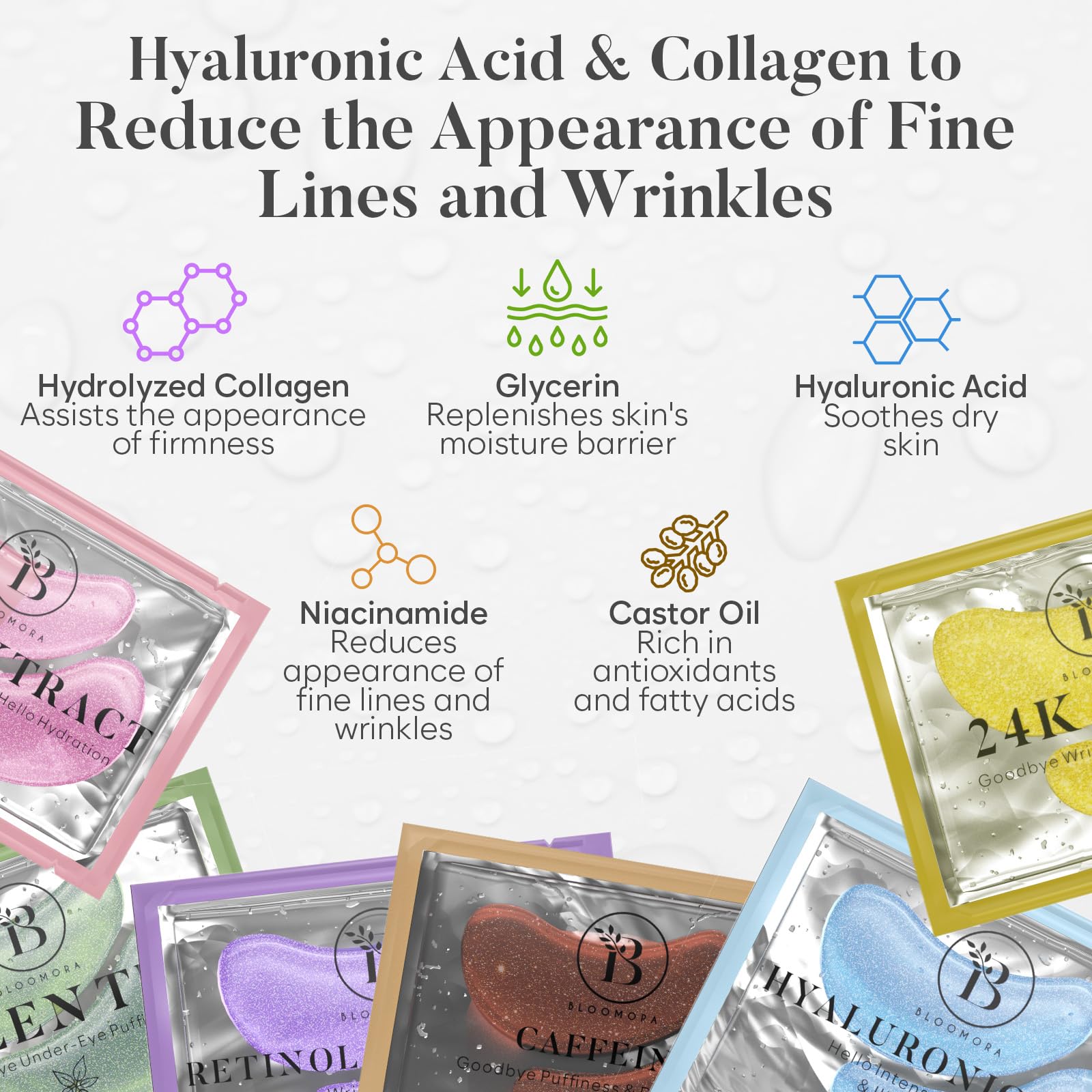 BLOOMORA Variety Under Eye Gel Patches (30 Pairs) | Eye Masks for Puffy Eyes | Collagen Eye Patches | Under Eye Patches for Dark Circles & Puffiness | Under Eye Mask for Eye Care