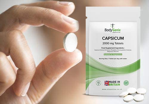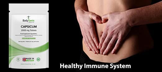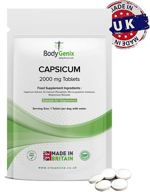 Bodygenix Capsicum Extract 2000mg Tablets - High Strength Anti Inflammatory Immune Metabolism Digestive Anti Oxidant Support - Vegan Food Supplement 120 Tablets