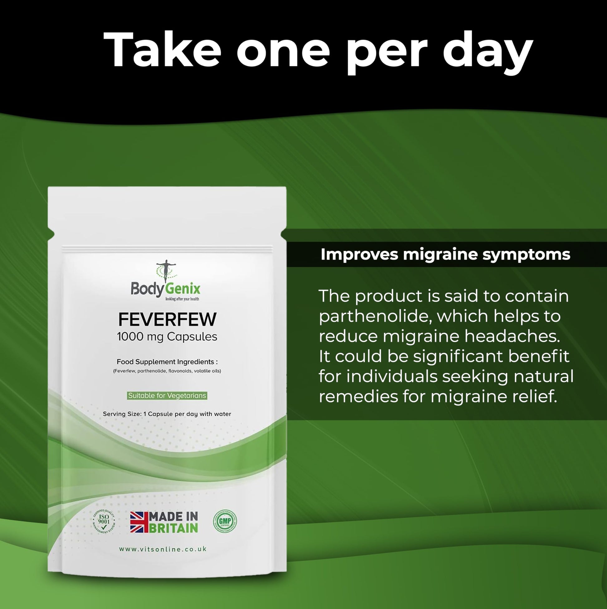 Bodygenix Feverfew 1000mg Vegan Tablets Supplements – with Anti-inflammatory Properties – Support Healthy Joints Health, Supports Mood and Migraine Headache (60)