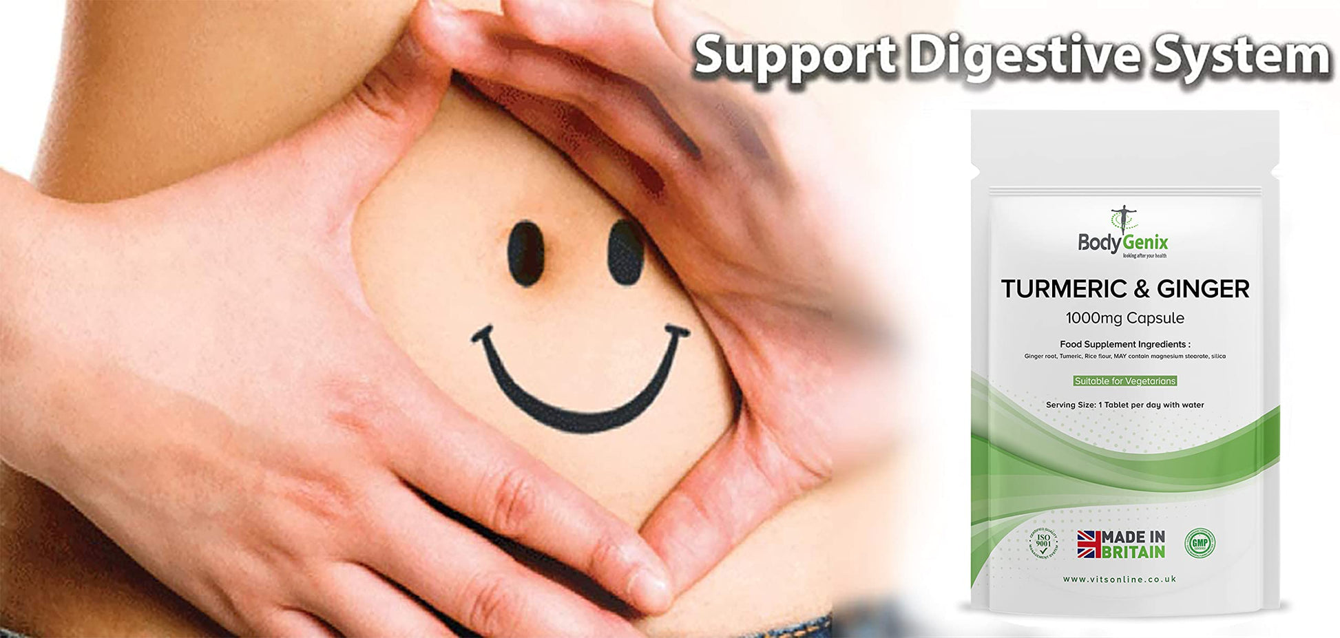 Bodygenix Ginger & Turmeric 1000mg Tablets - Antioxidant Anti-Inflammatory Healthy Skin Immune System Supplement - Vegan Friendly 30 Tablets, 1 Month Supply