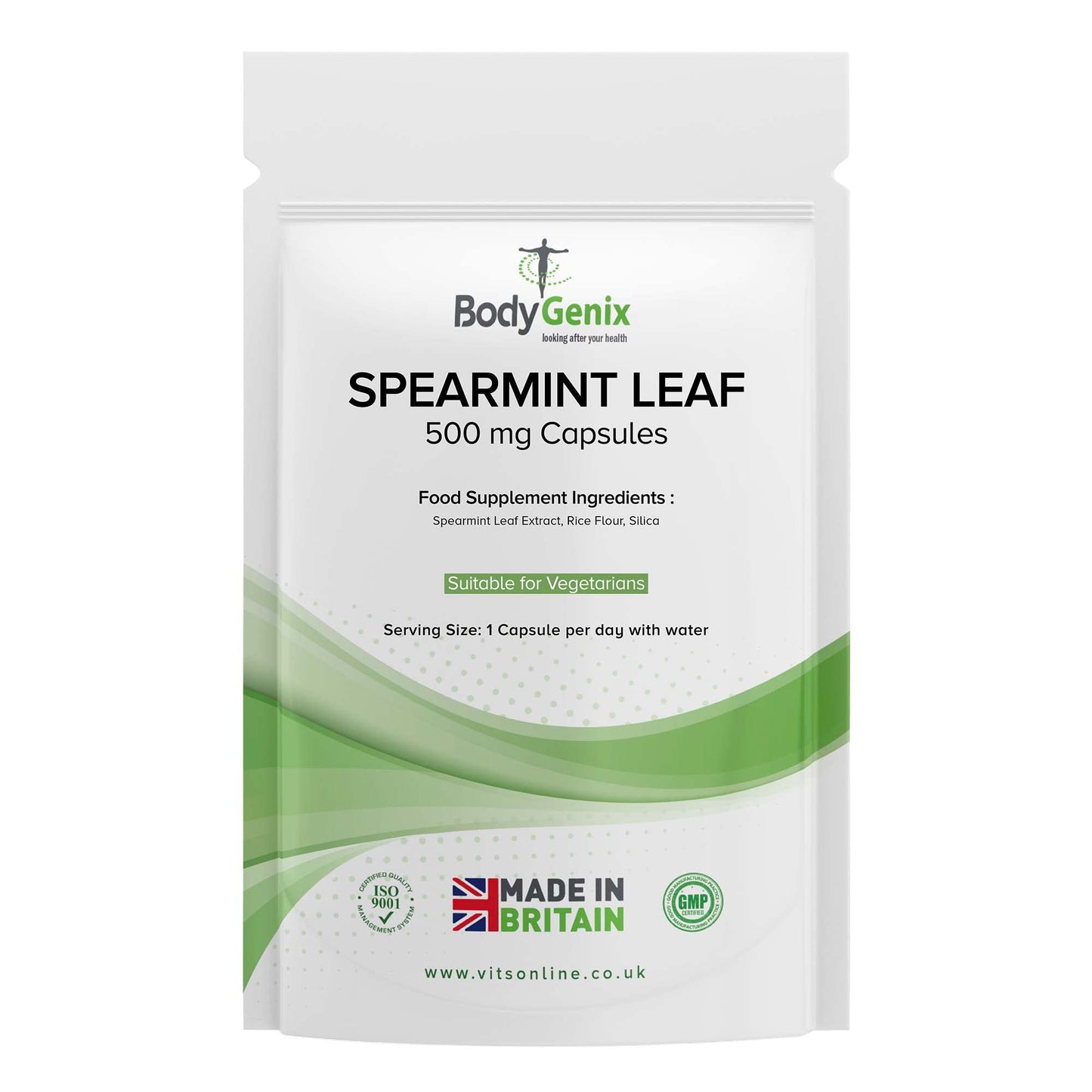 Bodygenix Spearmint Leaf Capsules - 500mg Hormonal Balance Digestive Health Fatigue & Stress Relief Support Antioxidant Formula Natural Food Supplement - 60 Capsules 2 Month Supply