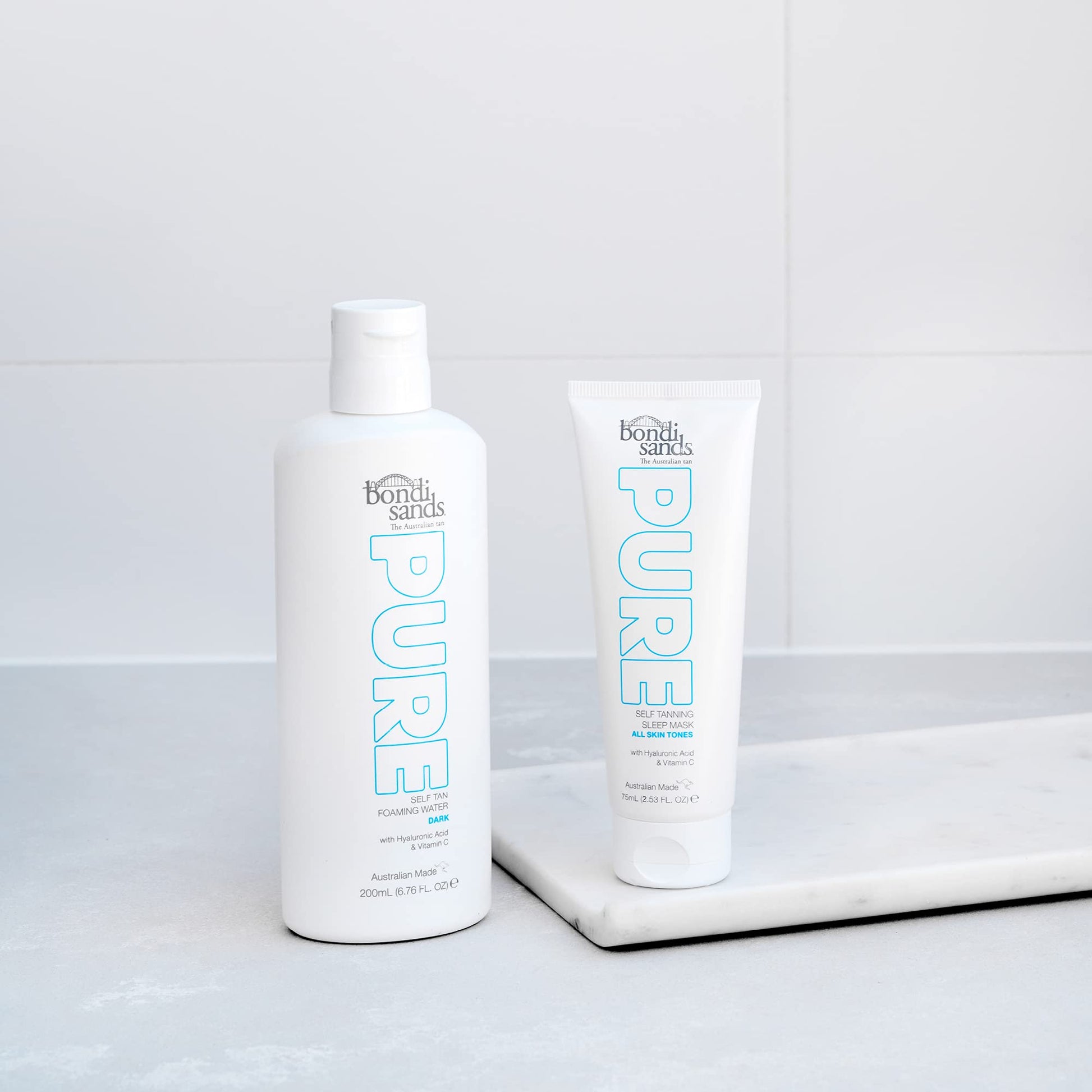- ABOUT THE PRODUCT: Self-tanning goes clean & sustainable - discover the new way to self tan! Bondi Sands PURE Self-Tanning Sleep Mask combines our iconic golden glow with skincare-first ingredients like Hyaluronic Acid for hydration, Vitamin C for radiance, and Vitamin E for rejuvenation. Wake up to hydrated, glowing skin with our rich and nourishing formula that is colorless, fragrance free, and gentle enough for sensitive skin.