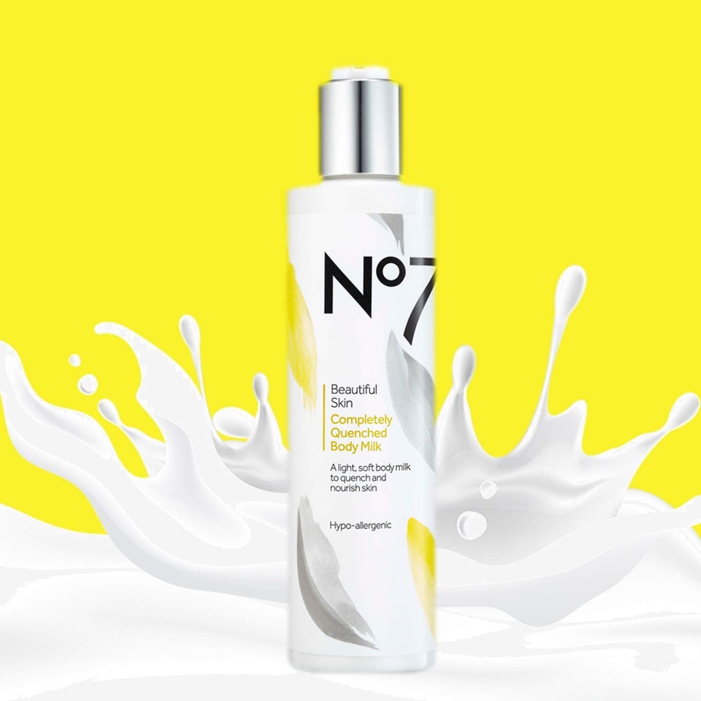 Boots No7 Beautiful Skin Completely Quenched Body Milk 280ml: A little luxury everyday... Wrap your skin in head-to-toe luxury with this soft body milk. Formulated to be lightweight and easily absorbed, it vanishes into thirsty skin to moisturise and care for 48 hours. Skin is left feeling refreshed, nourished and skin texture is evened, revealing healthy and radiant skin. Our carefully selected blend of ingredients, including Shea Butter, help to both soften and smooth the skin, whilst the anti-oxidant Vitamin E helps protect the skin.Hypo-allergenic: Because all skin can have sensitive moments, all our products are hypo-allergenic using ingredients we know and trust. How to Use For best results: Massage into skin after bathing or showering. To give your skin an extra treat prepare your skin first with No7 Beautiful Skin Perfecting Body PolishMore Info