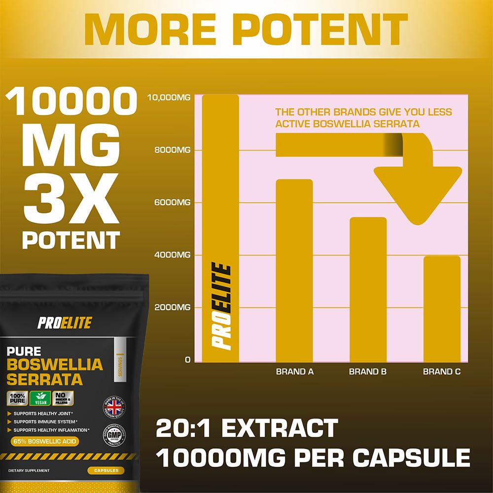 Boswellia Serrata Extract 10,000mg – 65% Boswellic Acid (500mg per Capsule) | Joint Care Supplements | 30 Capsules (1 Months Supply) | Indian Frankincense Resin | by PROELITE