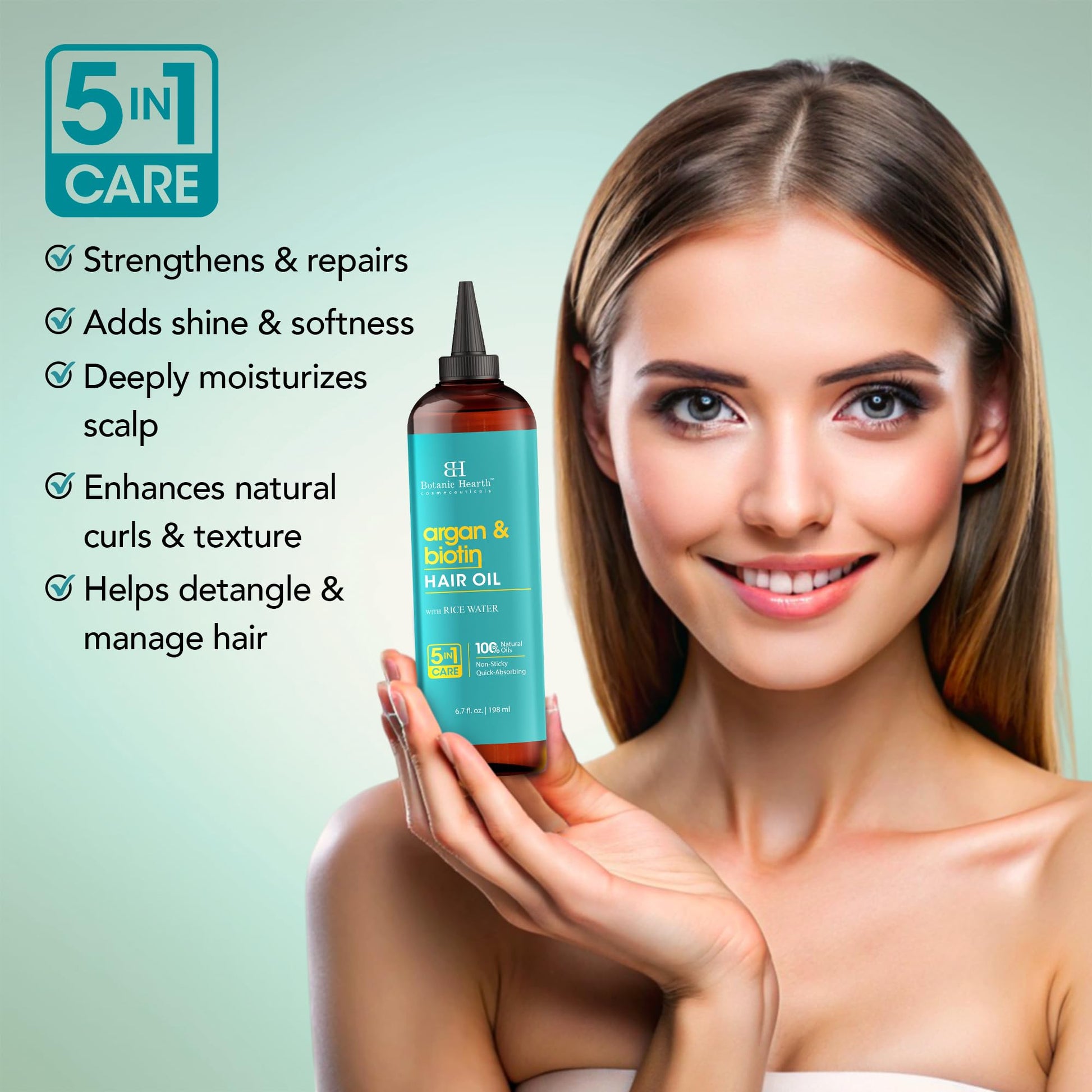 Botanic Hearth Argan & Biotin Hair Oil - 6.7 fl oz - Strengthening and Nourishing Hair Treatment for Thicker, Fuller-Looking Hair - Paraben Free - For All Hair Types