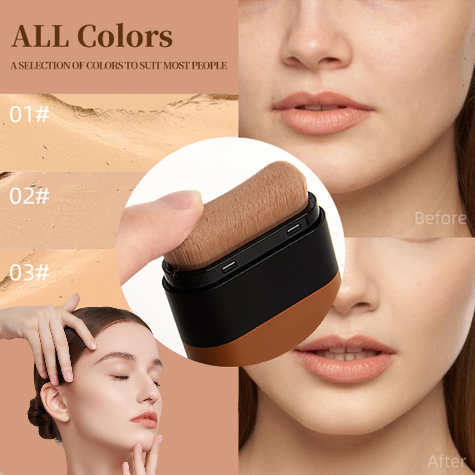 Boxiatil Multi-purpose Foundation Stick with Built-In Brush, Face Makeup, Natural Long-lasting Masking Foundation for Daily Use (01#, 20g)