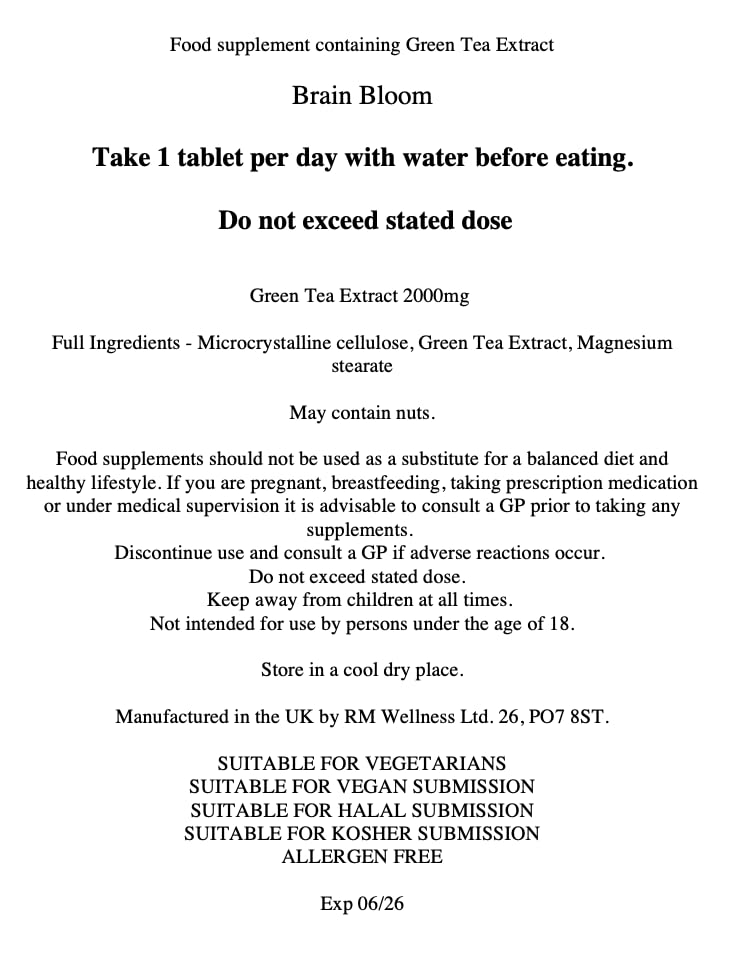 Unlock Your Full Potential Every Day with Brain Bloom - The Natural, Affordable, and Effective Nootropic Health Supplement. Imagine if every day could be your best day—focused, energized, and clear-minded. Brain Bloom is a revolutionary nootropic supplement crafted from powerful, science backed natural ingredients proven to elevate your mental performance and enhance cognitive function. And best of all, it’s affordable and fits easily into your daily routine. Brain Bloom is designed to support memory, improve focus, and reduce mental fatigue without harsh chemicals or synthetic fillers. Whether you’re studying for exams, tackling big projects, or just want to feel more alert and productive, Brain Bloom is your partner for peak performance. Why Choose Brain Bloom? Natural Ingredients: The pure, plant-based ingredients in Brain Bloom have been shown to have a positive effect on brain health and memory, and may help protect against brain diseases. Affordable: High-quality supplements shouldn’t cost a fortune - Brain Bloom is budget-friendly, making brain health accessible for everyone. No Jitters, No Crash: Unlike caffeine-loaded alternatives Brain Bloom offers smooth, sustainable focus without the highs and lows. Get Ready to Thrive! Unlock sharper focus, better memory, and improved mental clarity. Power your mind naturally and effectively. Try Brain Bloom today and experience what’s possible when you fuel your mind with nature’s best. Fuel Your Mind, Reach New Heights. Directions: Take 1 tablet per day with water before eating. Do not exceed stated doseMore Info