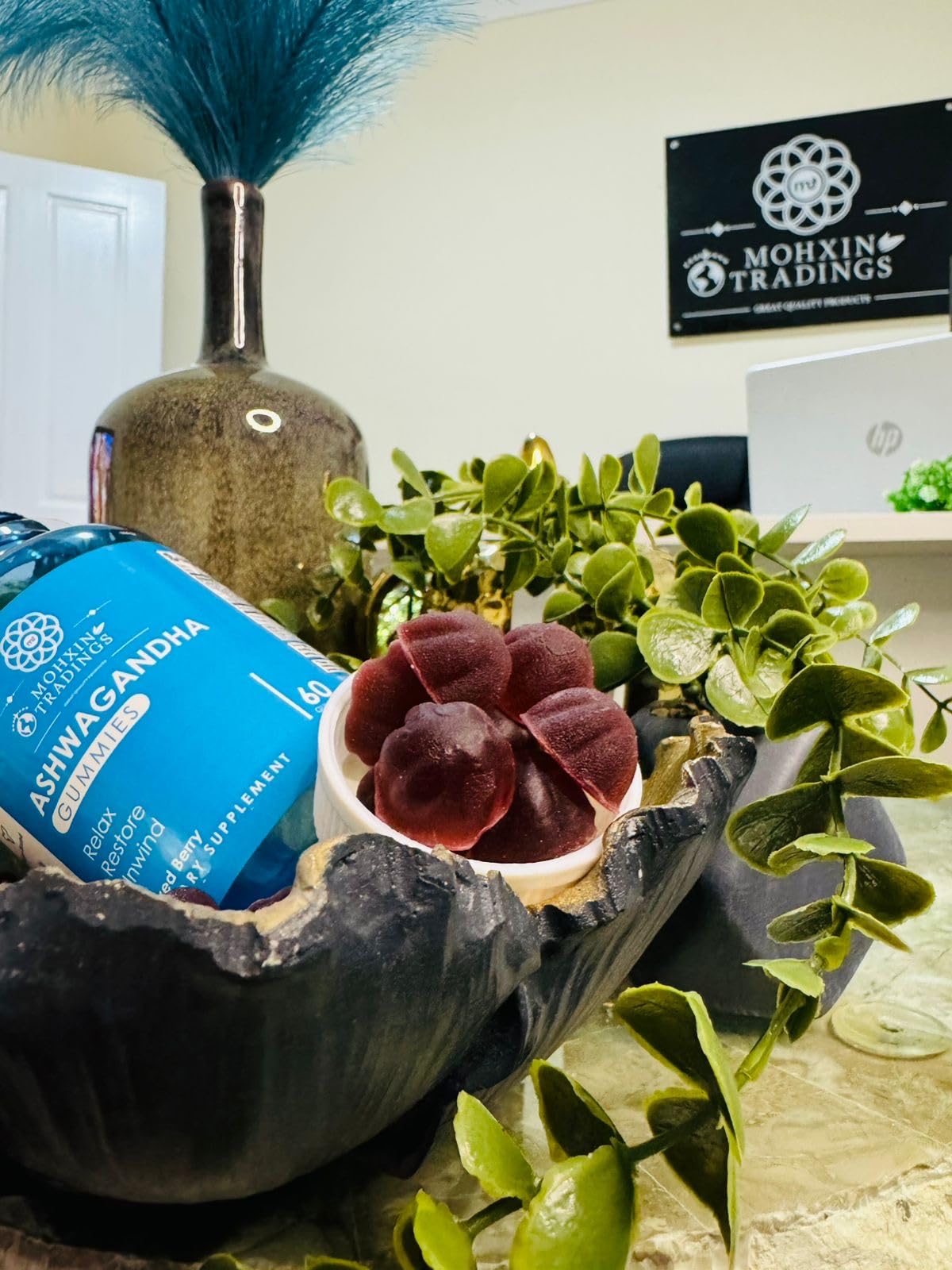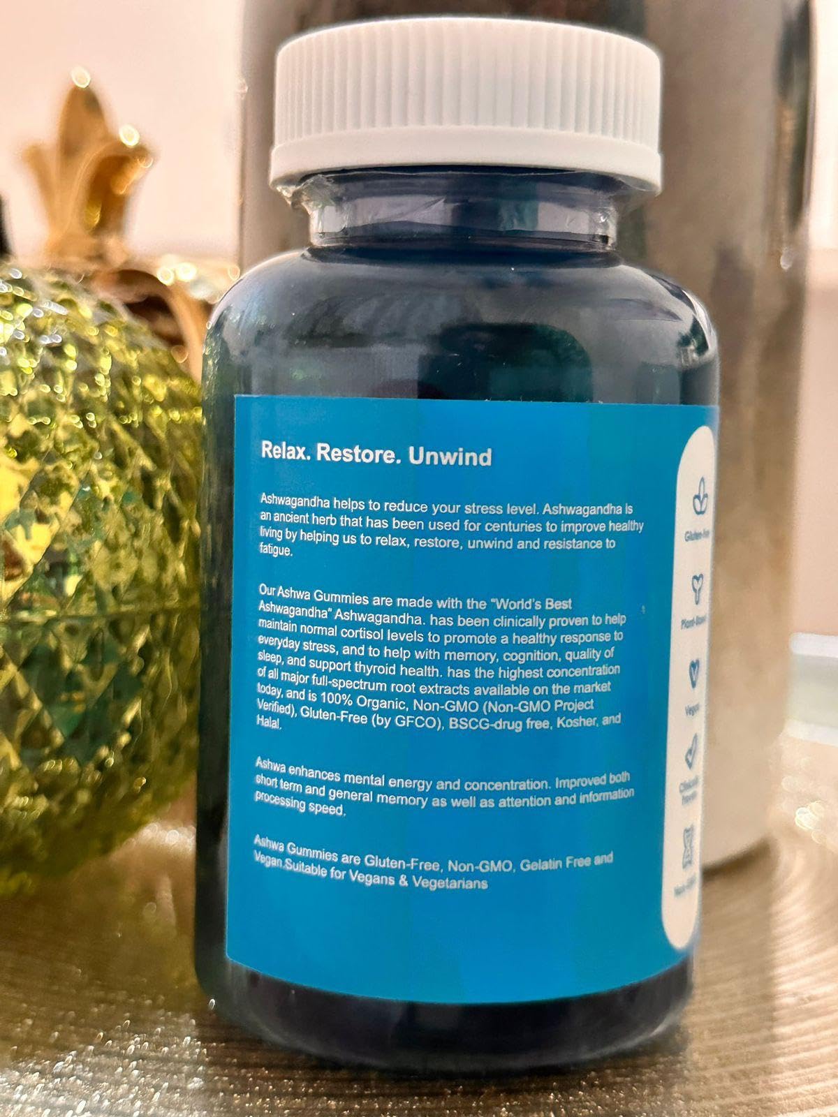 ntroducing Premium Quality Ashwagandha Herbal Gummies, a delicious and convenient way to enjoy the benefits of this ancient herb. Each bottle contains 60 gummies infused with a delightful berry flavour that is sure to satisfy your taste buds. Ashwagandha is known for its ability to promote relaxation and reduce stress, making these gummies a great choice for those who need a little help unwinding after a long day. Additionally, they can help improve sleep quality and cognitive abilities, making them a great choice for those who struggle with staying focused throughout the day. These gummies are also known for their ability to improve mood and help manage anxiety. Whether you're dealing with a stressful workday or a difficult personal situation, these gummies can help you feel more relaxed and calm. And because they are vegan and natural, you can feel good about enjoying them without any guilt. These gummies are conveniently packaged for easy consumption anytime, so you can take them with you on the go and enjoy the benefits of Ashwagandha whenever you need them. In summary, Premium Quality Ashwagandha Herbal Gummies are a delicious and convenient way to enjoy the benefits of this ancient herb. With their ability to promote relaxation, reduce stress, improve sleep quality and cognitive abilities, and manage anxiety, these gummies are a great choice for anyone looking to feel more relaxed and calm.More Info