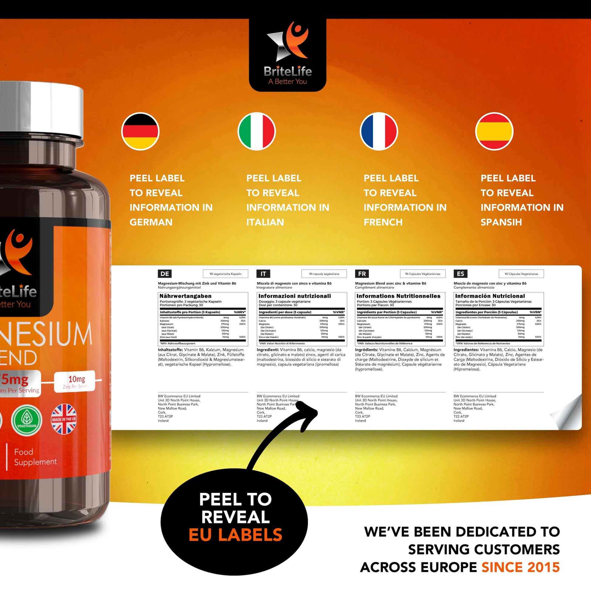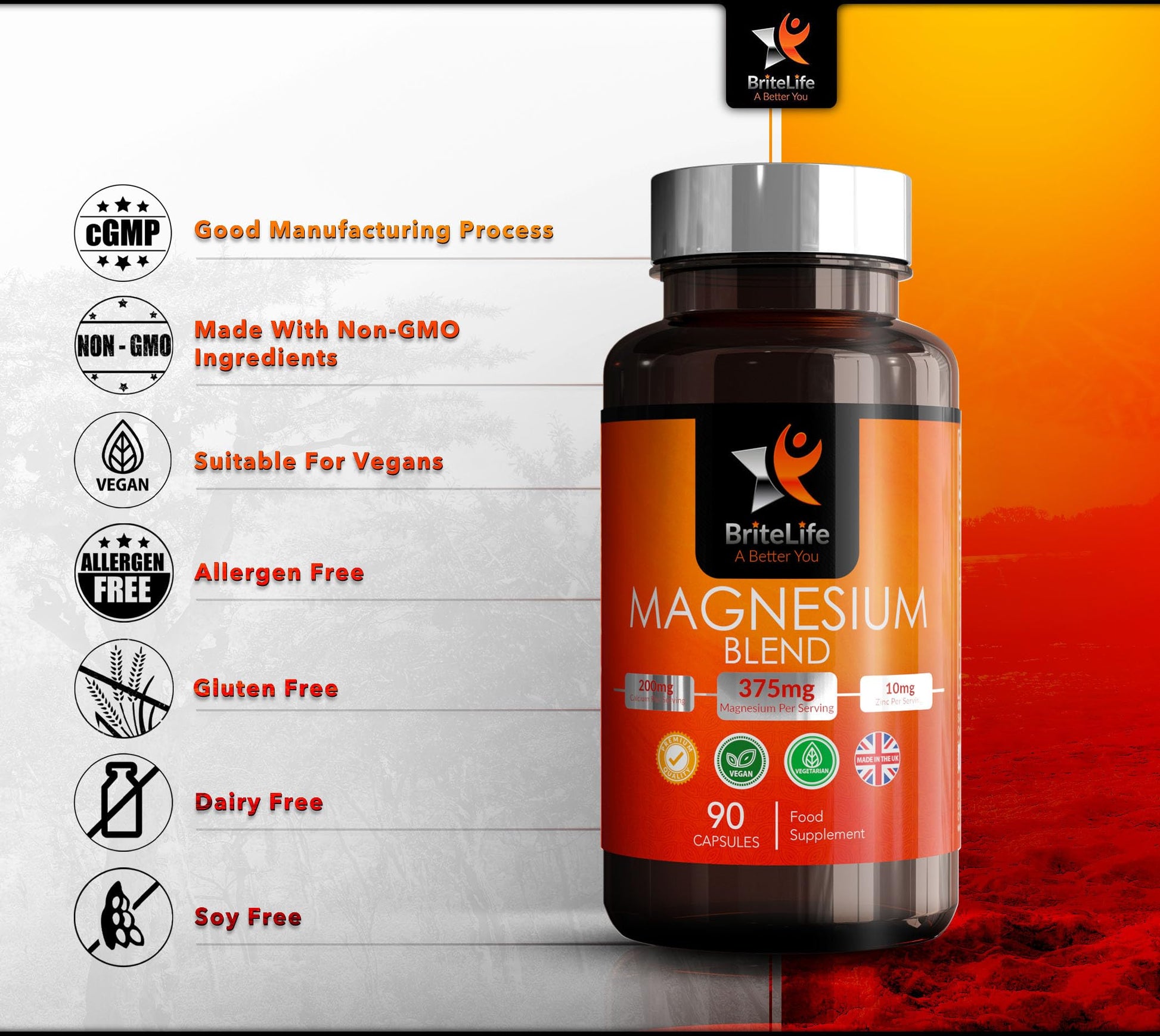 - MAGNESIUM BLEND - BriteLife's Magnesium Blend contains Magnesium Malate, Magnesium Glycinate, and Magnesium Citrate to deliver the unique set of benefits each form of magnesium offers the body. Each bottle contains 90 capsules.