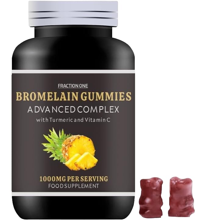 Bromelain Gummies - 1000mg Bromelain High Strength Gummies - 120 Gummies - 60 Servings - Enhanced with Turmeric 10mg and Vitamin C 80mg - Bromelain 500mg Per Gummy