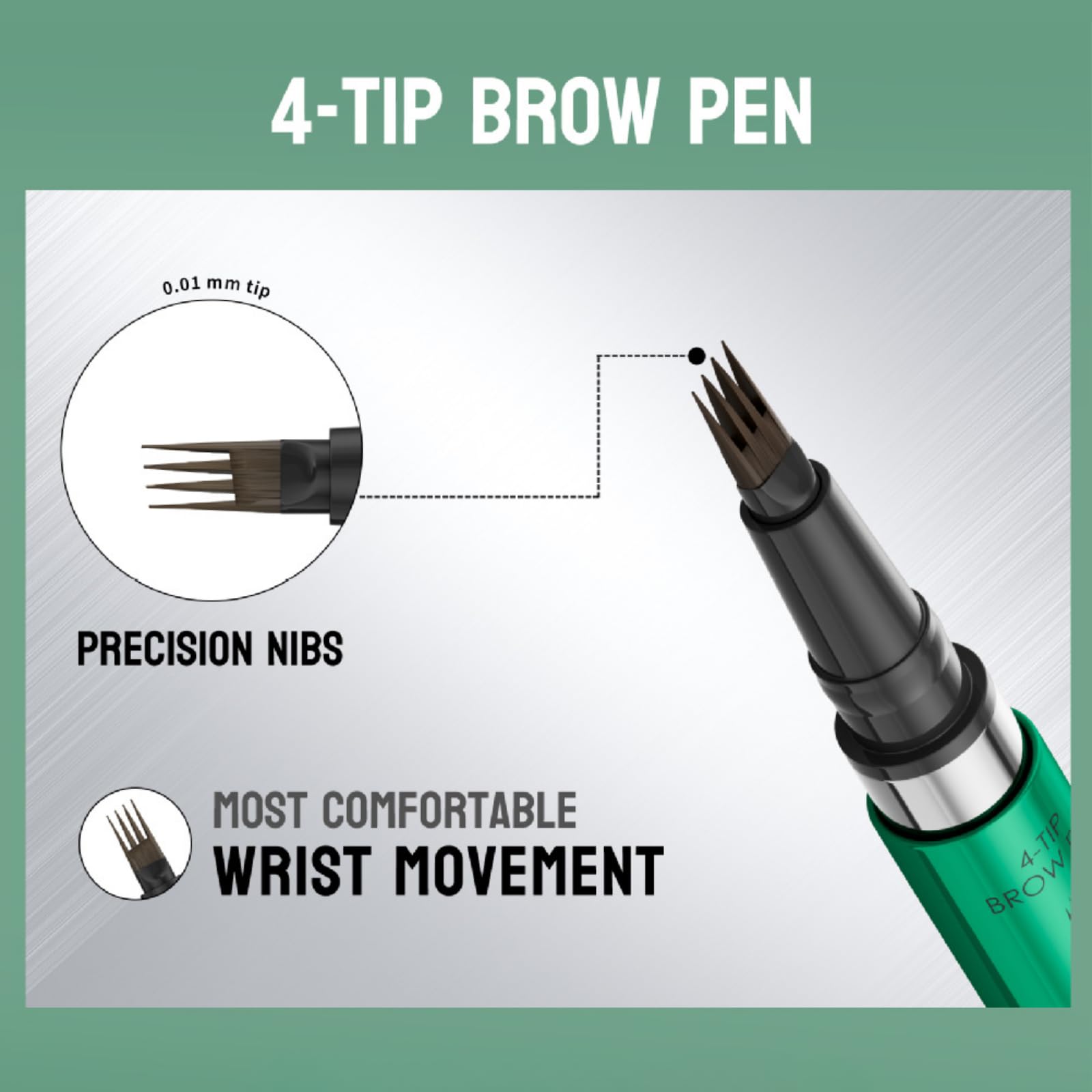 1. Use 4-Tip Brow pen fill in your eyebrows at a 45-Degreeangle