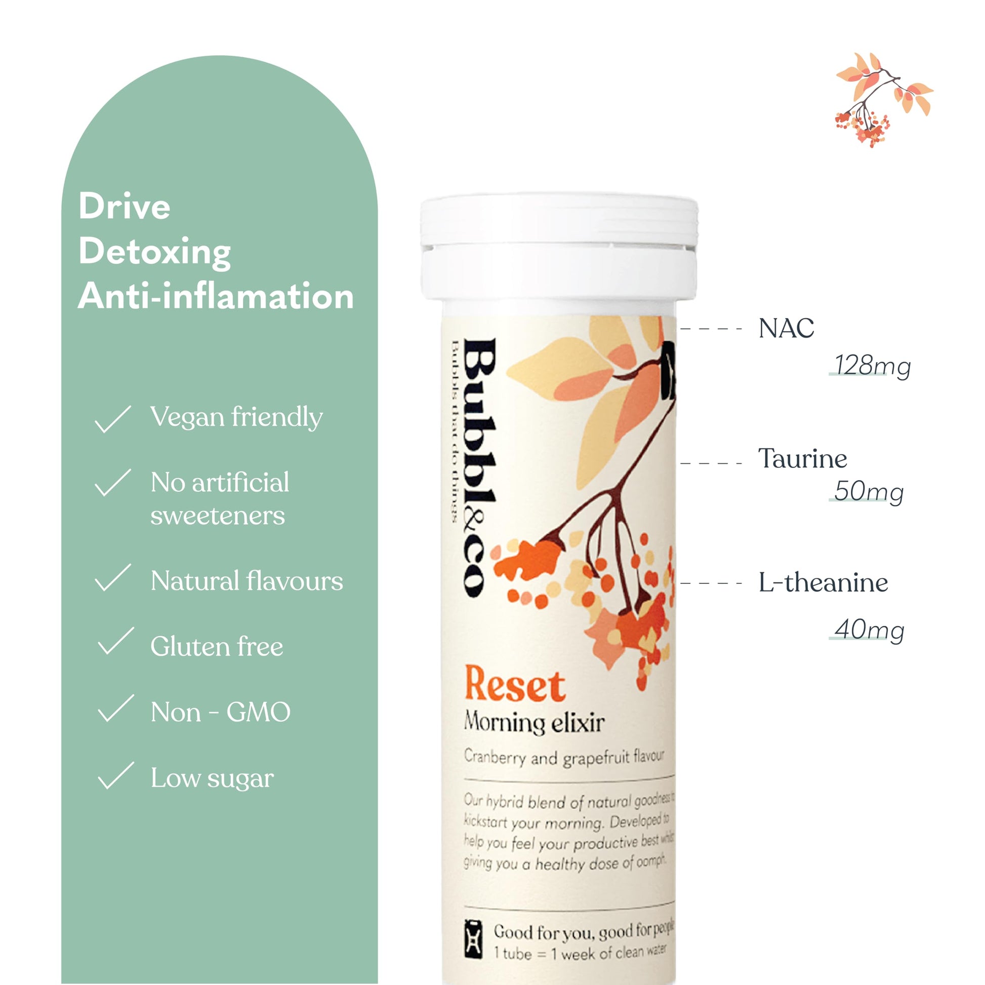 Bubbl & Co Reset Morning Elixir | Replace Your Morning Coffee | Plant Extracts, Amino Acids, Added Vitamins, Natural Caffeine (10 Drinks)