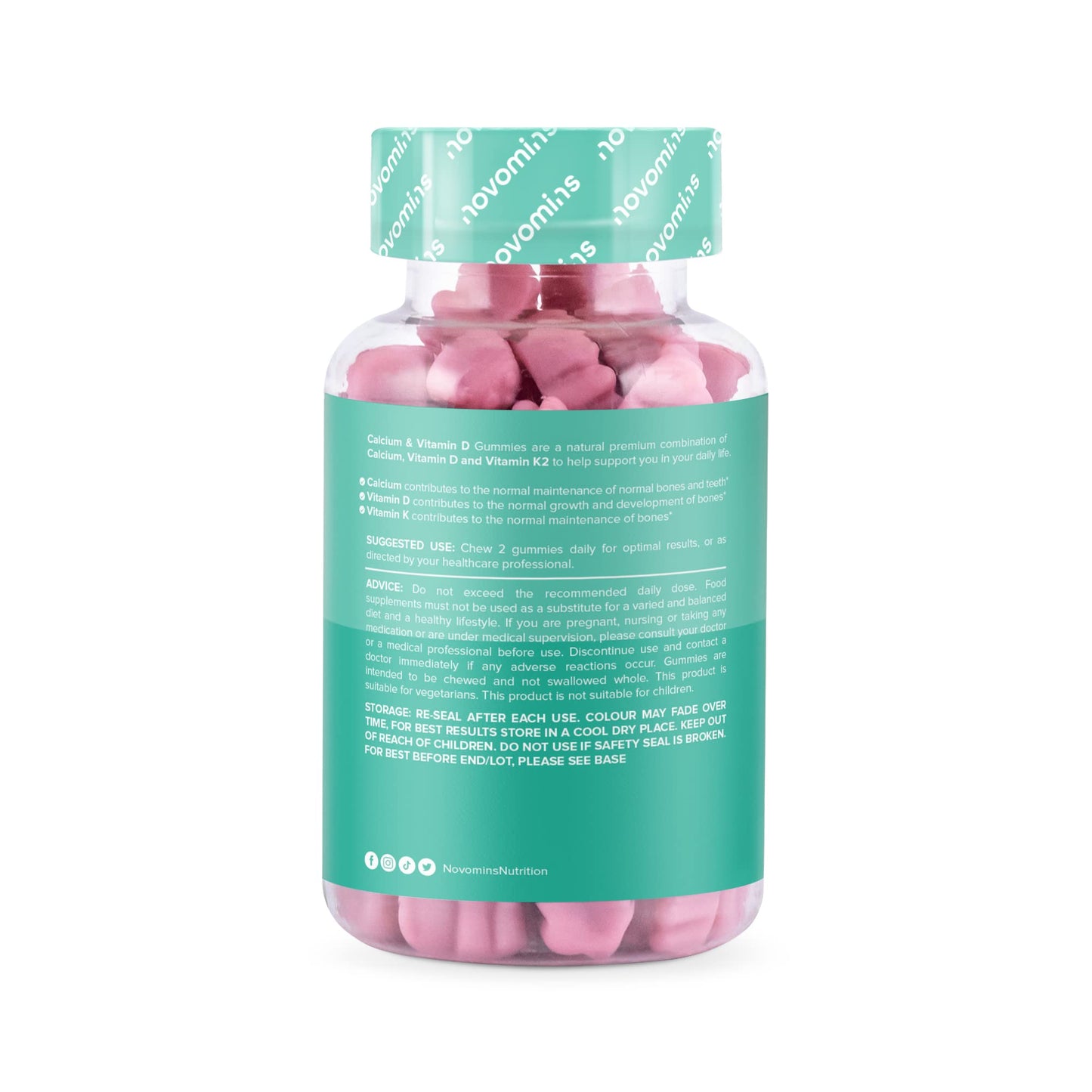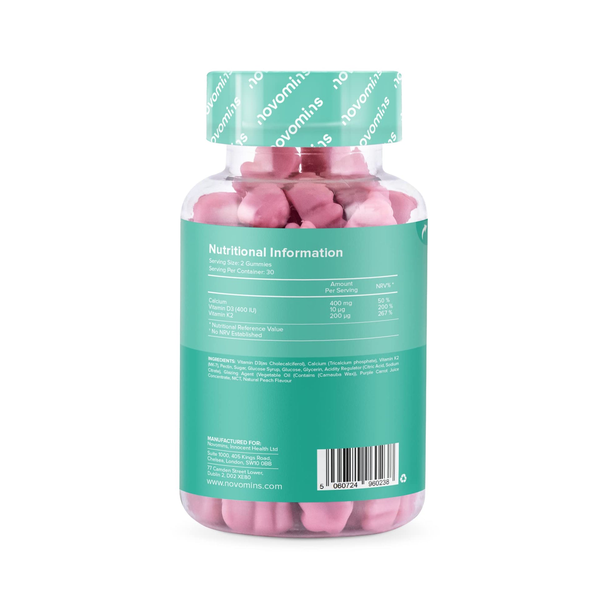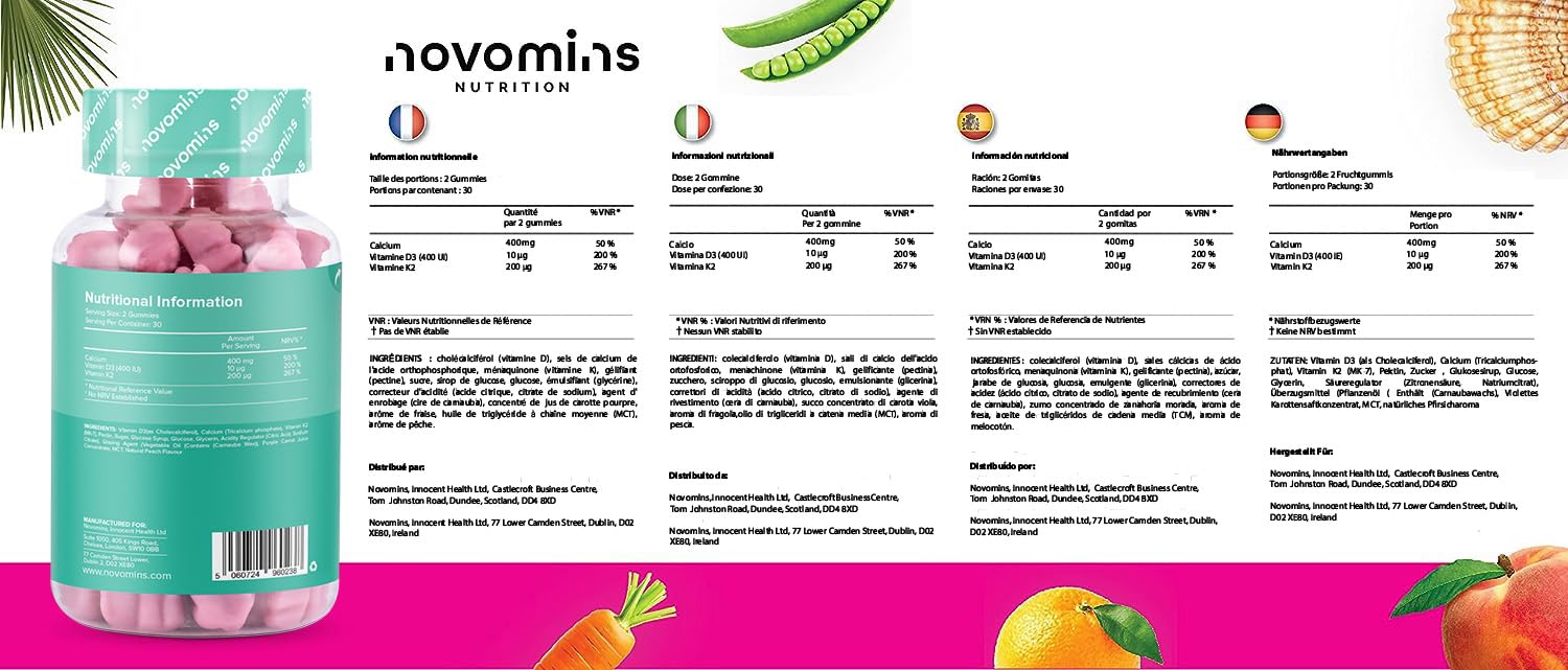 Calcium Gummies – 400mg of Calcium - with Vitamin D & K2 (MK-7) - Vegetarian – Gluten Free – 1 Month Supply - Chewable Calcium Vitamins – Healthy Muscles and Bones - Made by Novomins