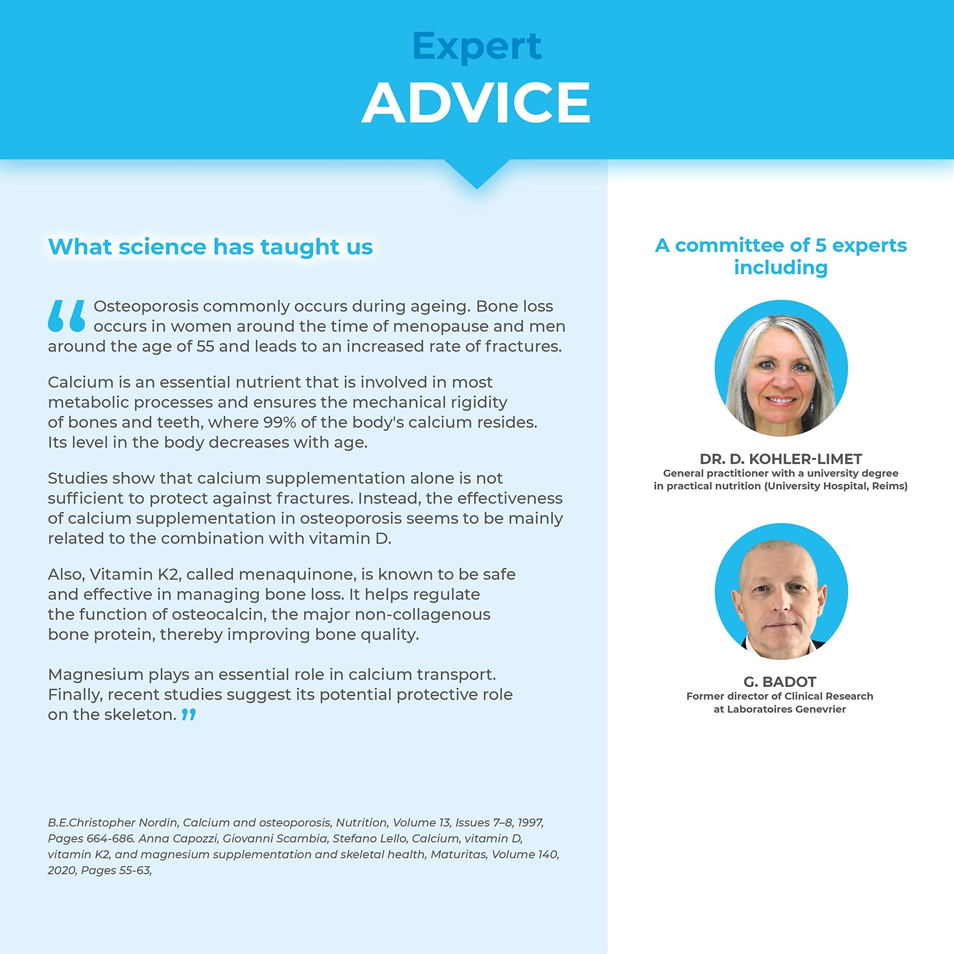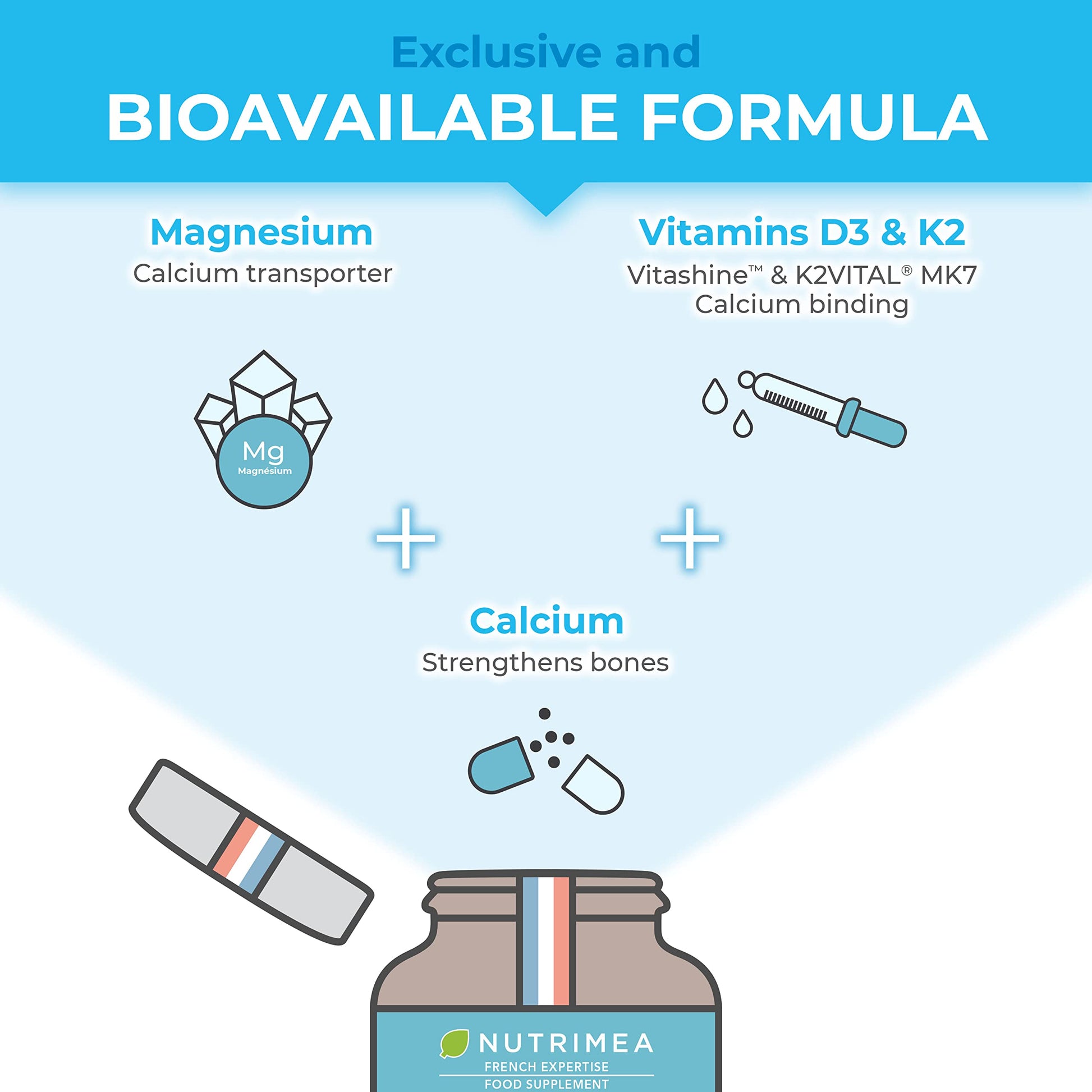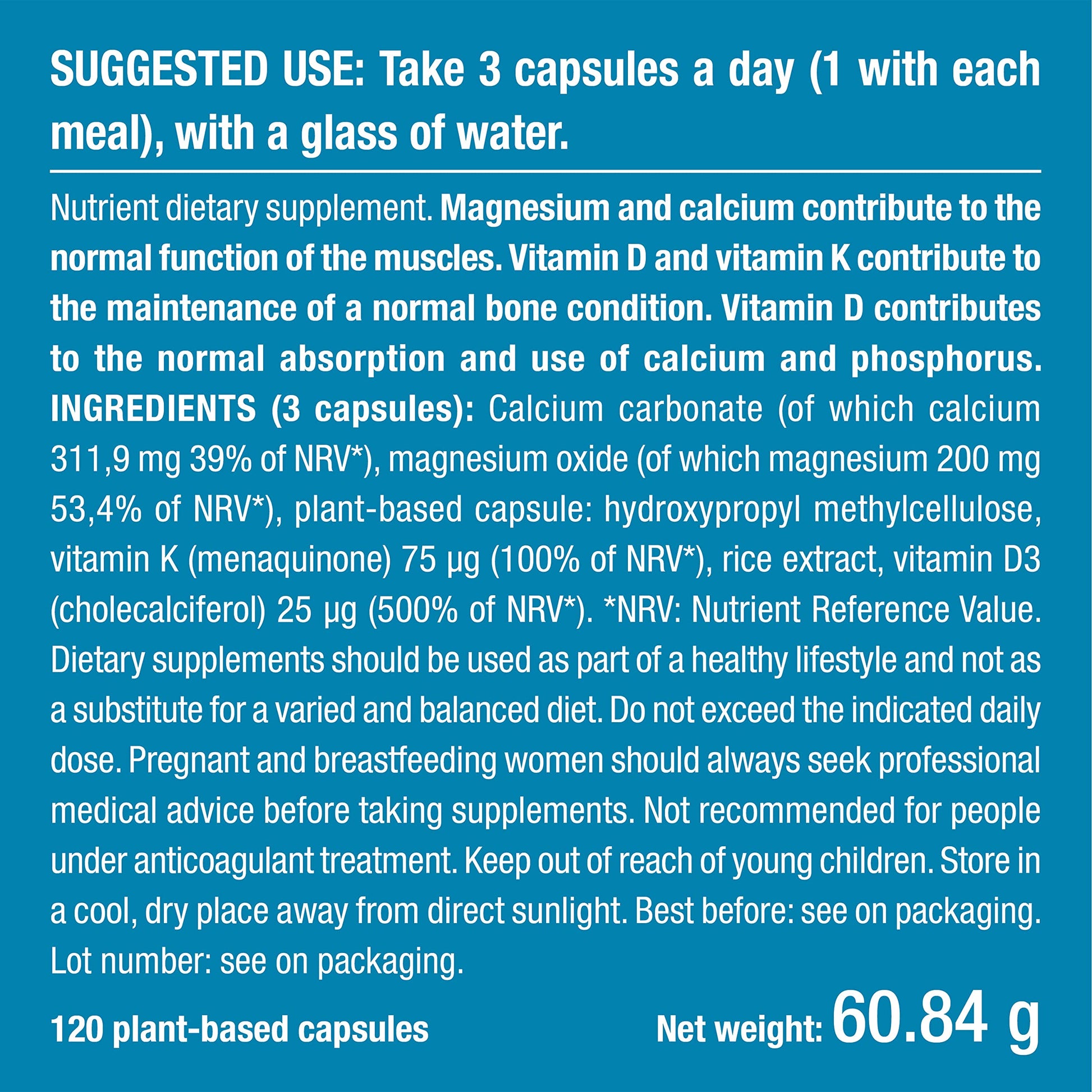 Calcium Magnesium Vitamin D3 & K2 | 120 Vegetarian Capsules | Bone Health Complex | Strengthens Bones and Muscles | Supports Bone Density | French Expertise