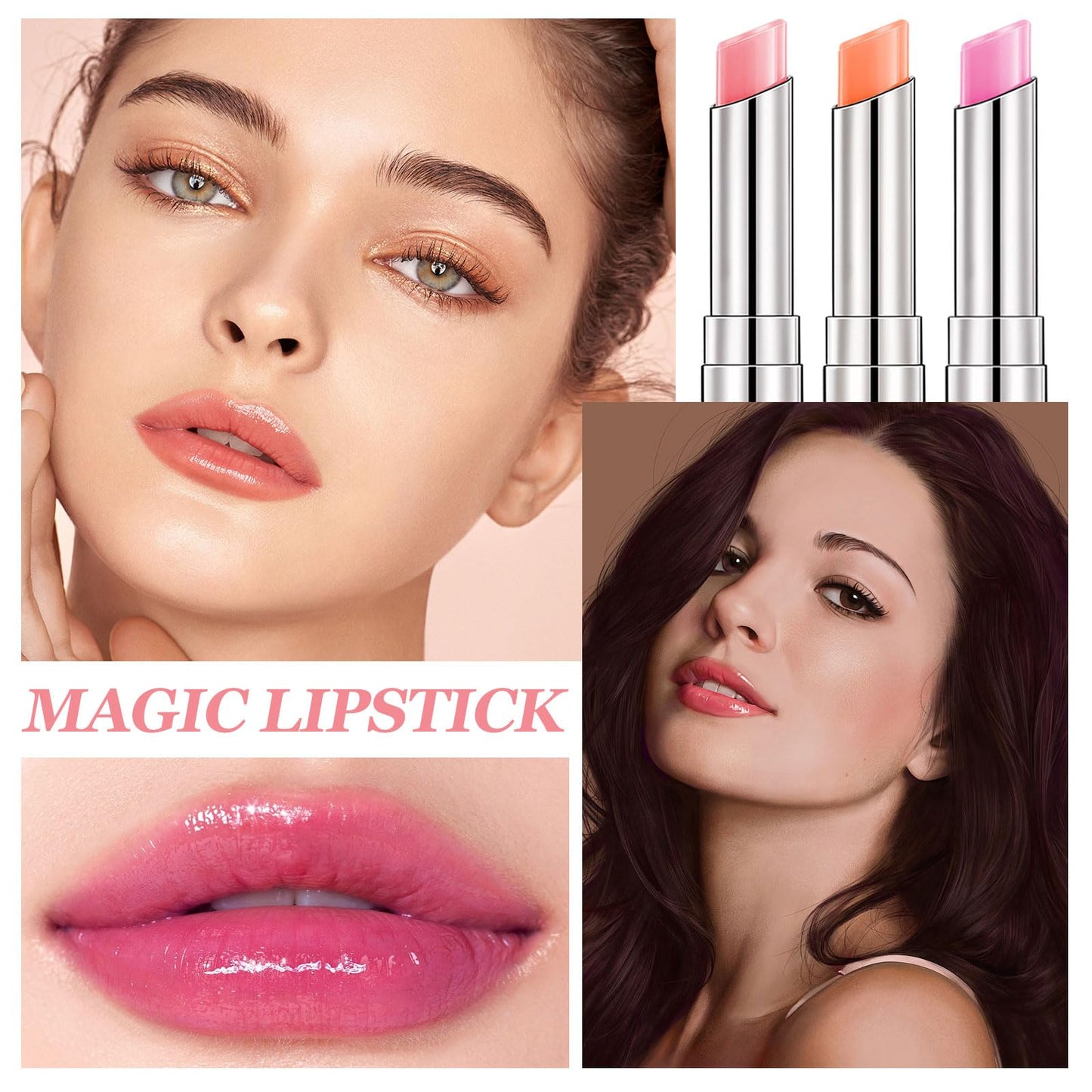 Ceboic 3PCS Colour Changing Lip Balm Moisturizing Lip Care Tinted Lip Balm Long Lasting Jelly Lipstick Set Magic Temperature Color Change Lipstick Natural Lip Protection Gifts for Teenage Girls Lip Repair