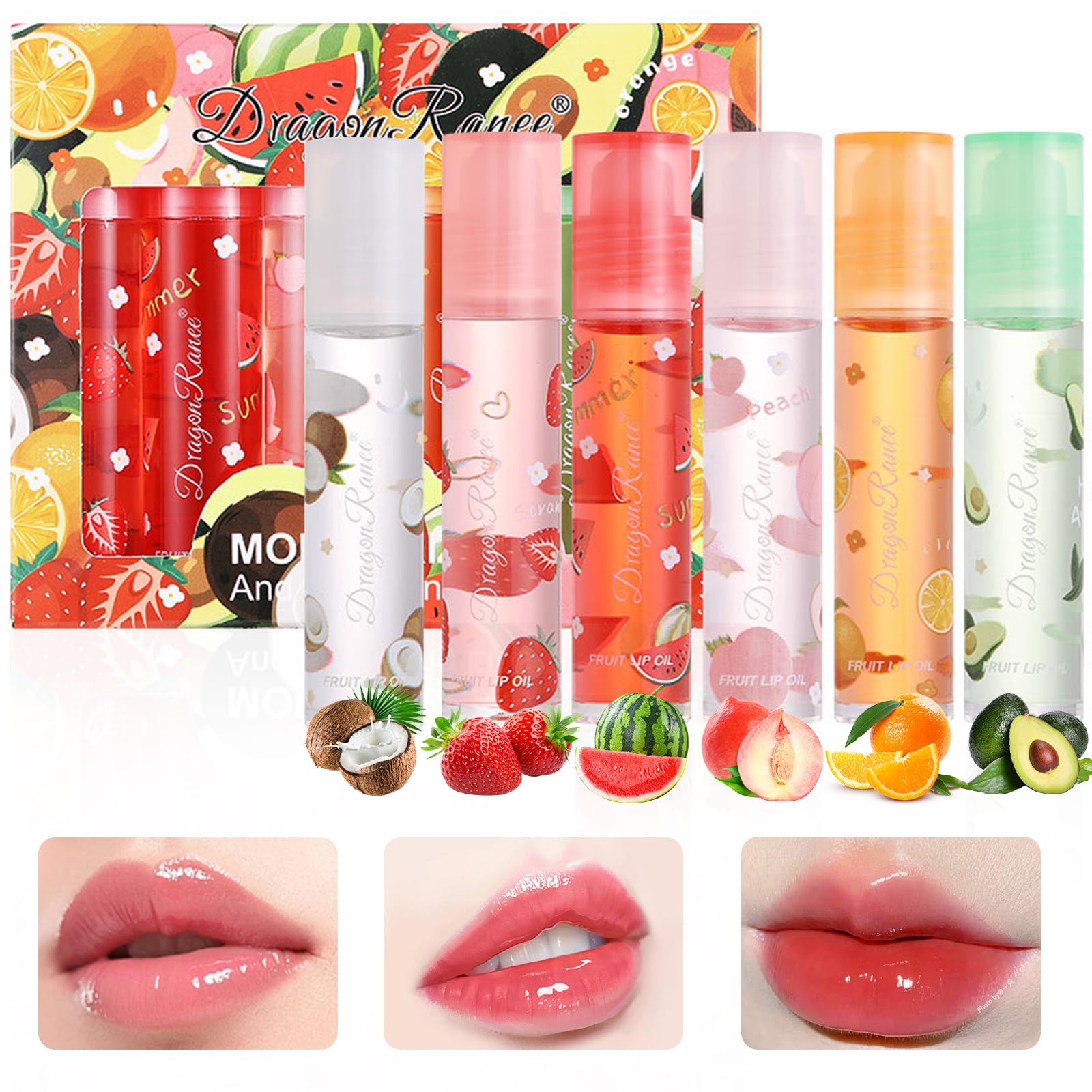 Ceboic 6 Pcs Lip Gloss Set Fruit Flavored Plumping Lip Oil Transparent Moisturizing Lipsticks Long Lasting Hydrating Lip Glow Balm Lip Care Kit Beauty Gifts for Teenage Girls Dry and Chapped Lips