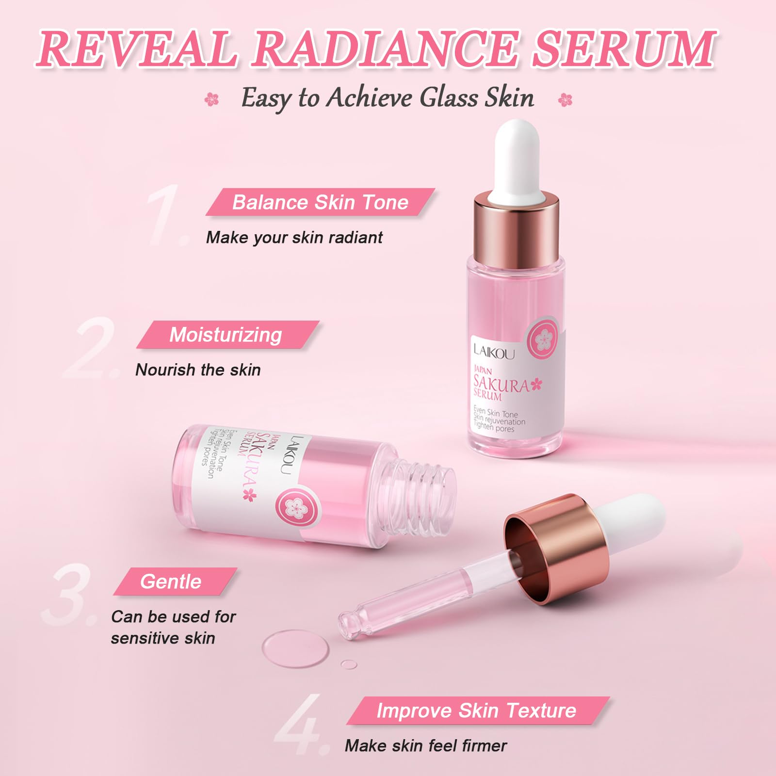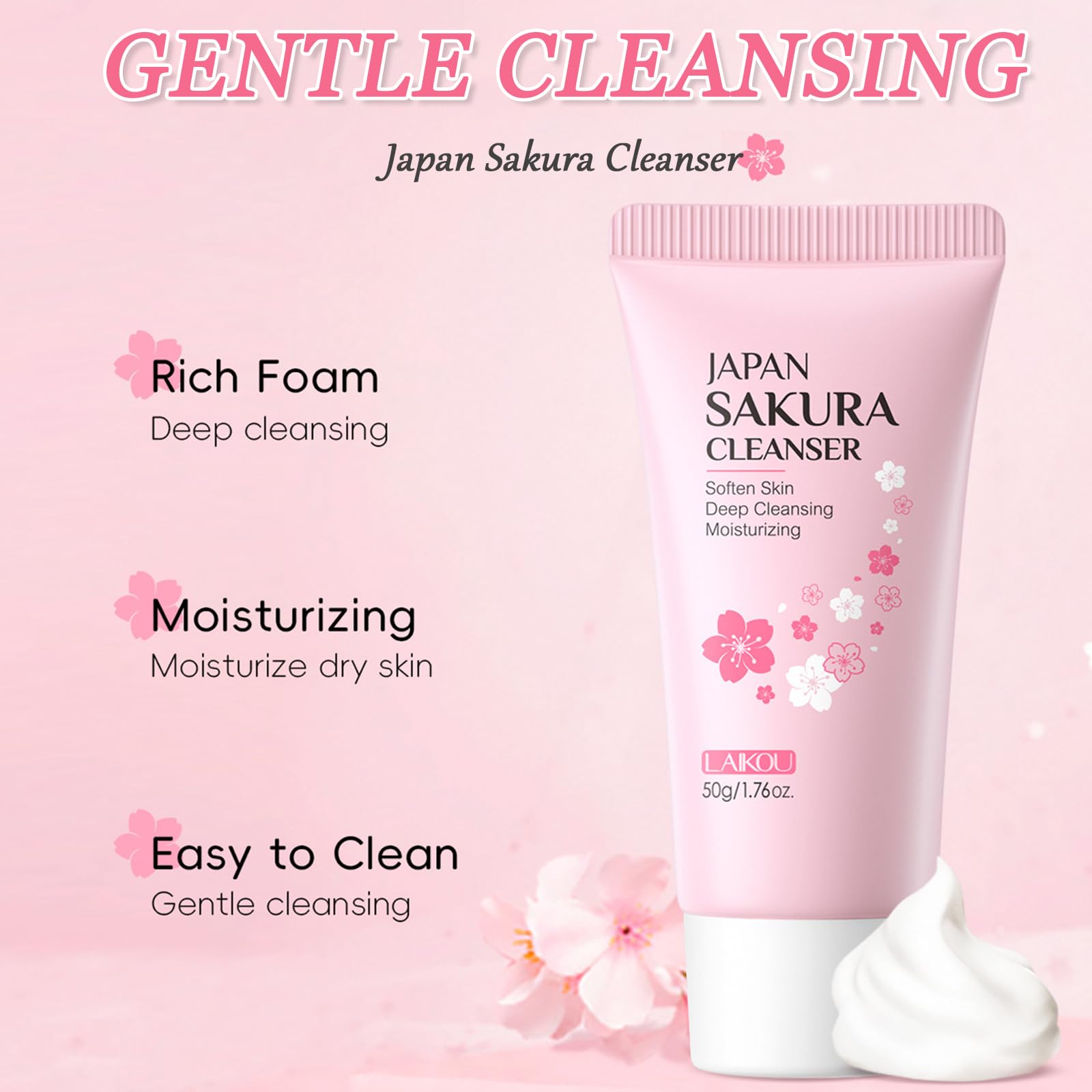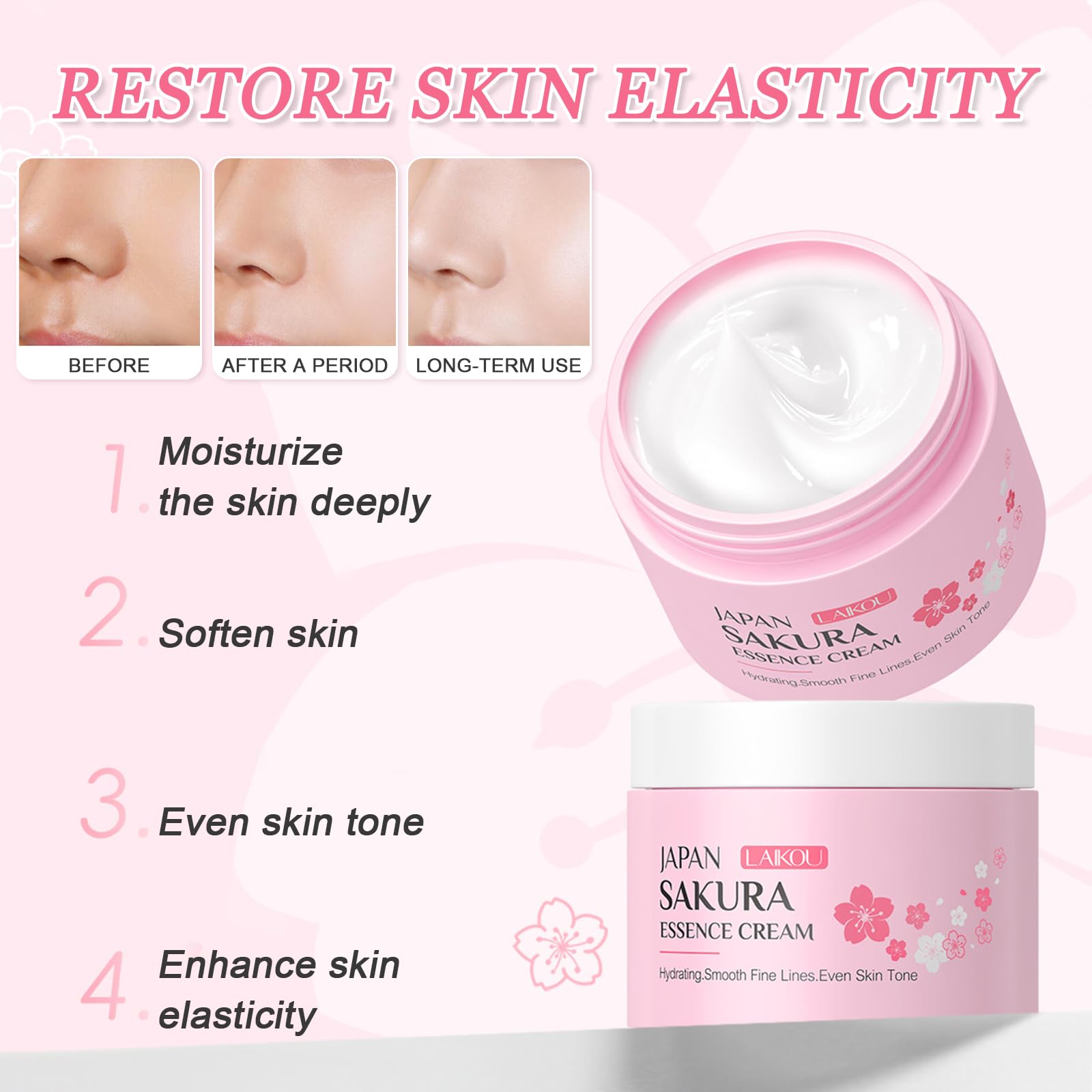 The skin care kit is rich in cherry blossom essence, which can deeply nourish and moisturize your skin, making it more smooth and elastic.More Info