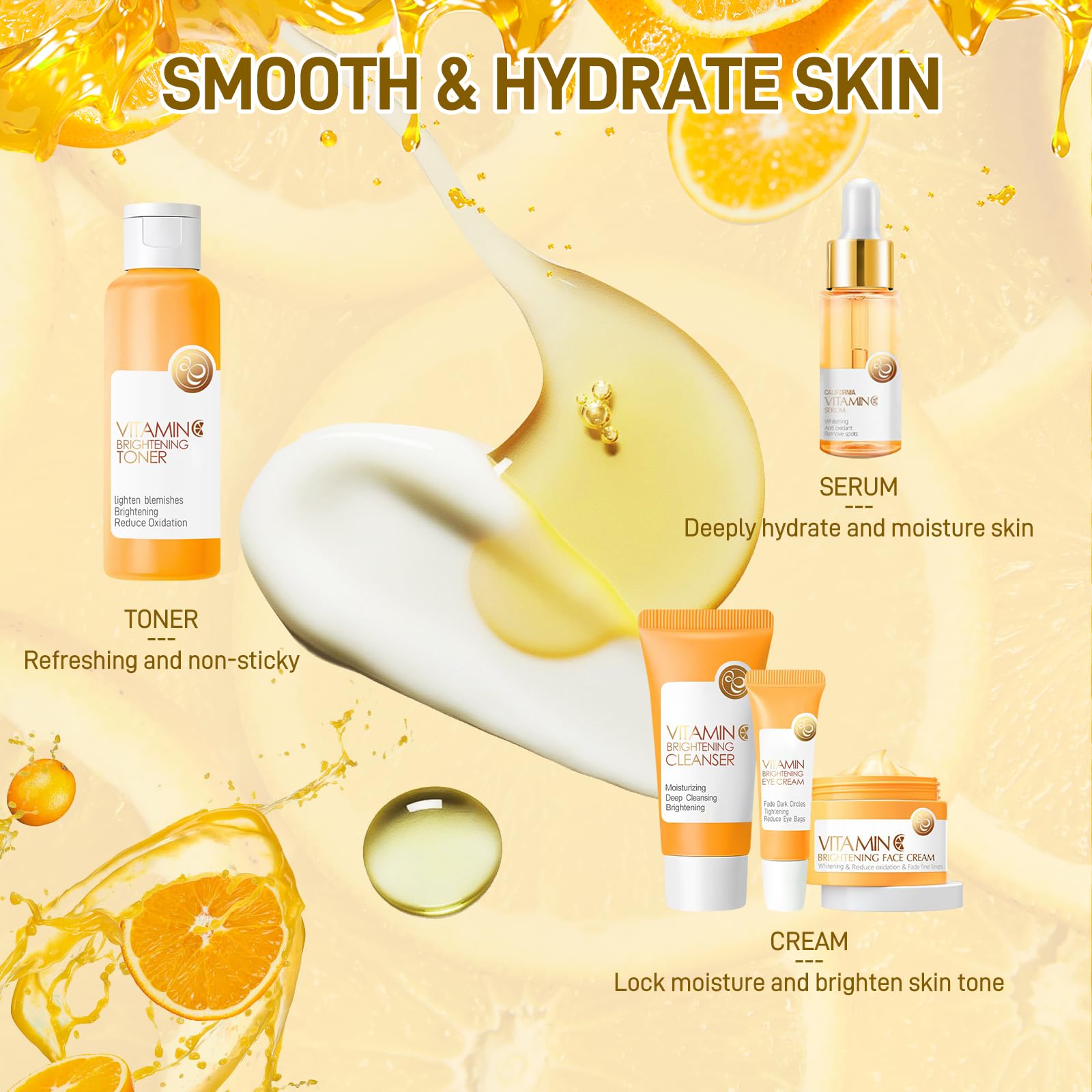 Vitamin C Eye Cream: It contains sakura essence, which can moisturize the eyes and help to remove fine lines . it can brighten the skin and reduce dark circles around the eyes. Thin as feathers and soft as velvet, it creates the bright look of the eyes.