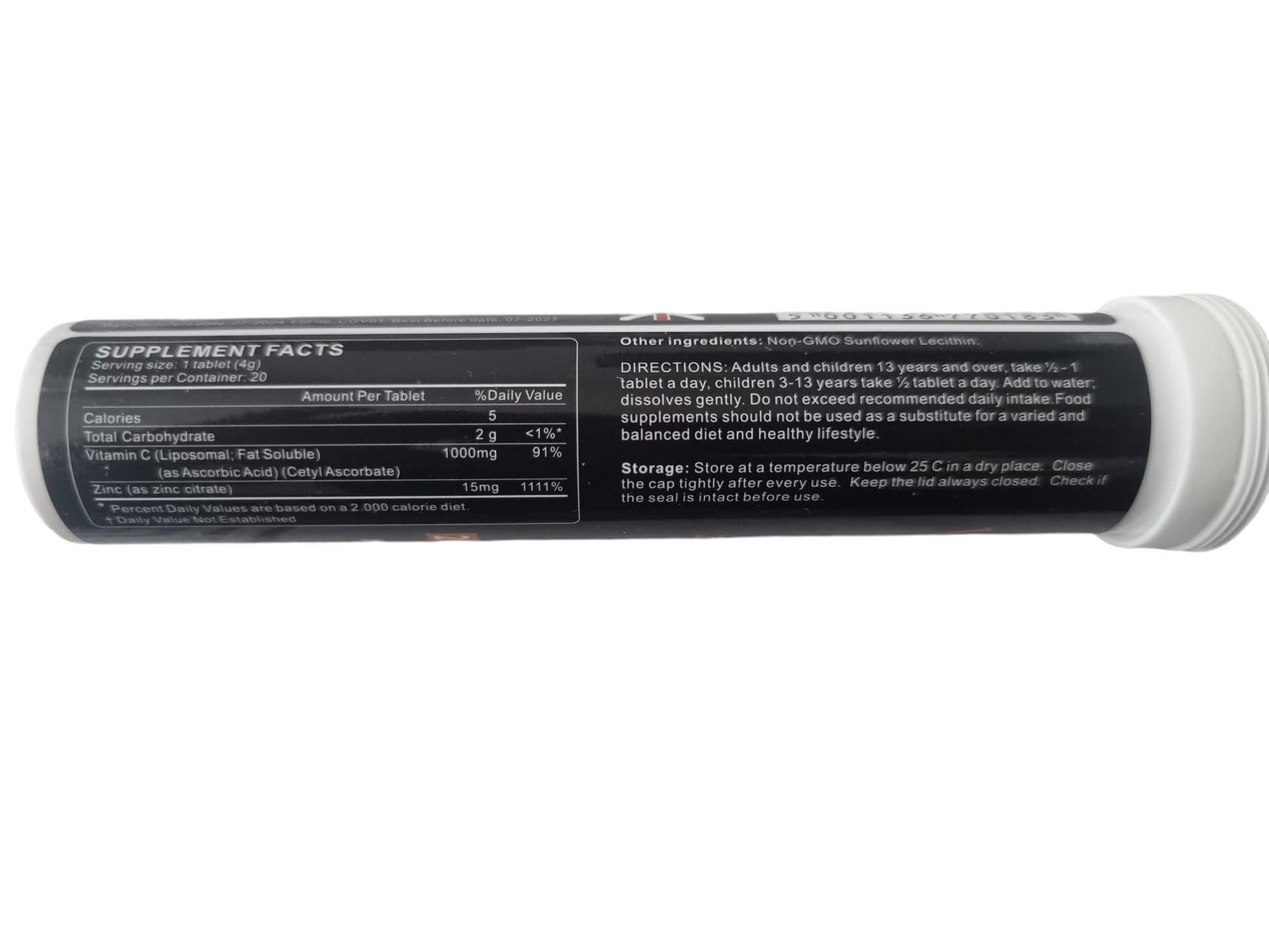 The first of its kind....Experience the power of liposomal vitamin C with this innovative effervescent supplement from Cell Naturals. 1000mg of vitamin C and 15mg of zinc citrate, this formula offers enhanced absorption up to 5 times higher than traditional vitamin C supplements. Simply dissolve the orange-flavoured tablets in 250ml of water for a refreshing and immune-boosting drink. Suitable for men, women, and children, this liposomal vitamin C provides 24-hour immune support in a great-tasting, all-natural form. Prioritise your well-being with this cutting-edge vitamin C supplement.More Info