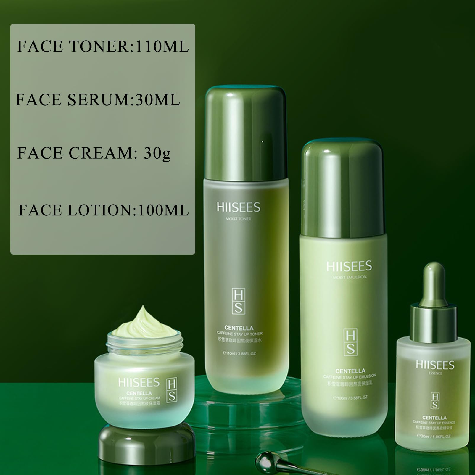 Including: -Face Cream30g -Face Toner:110ml -Face Serum:30ml -Lotion:100ml