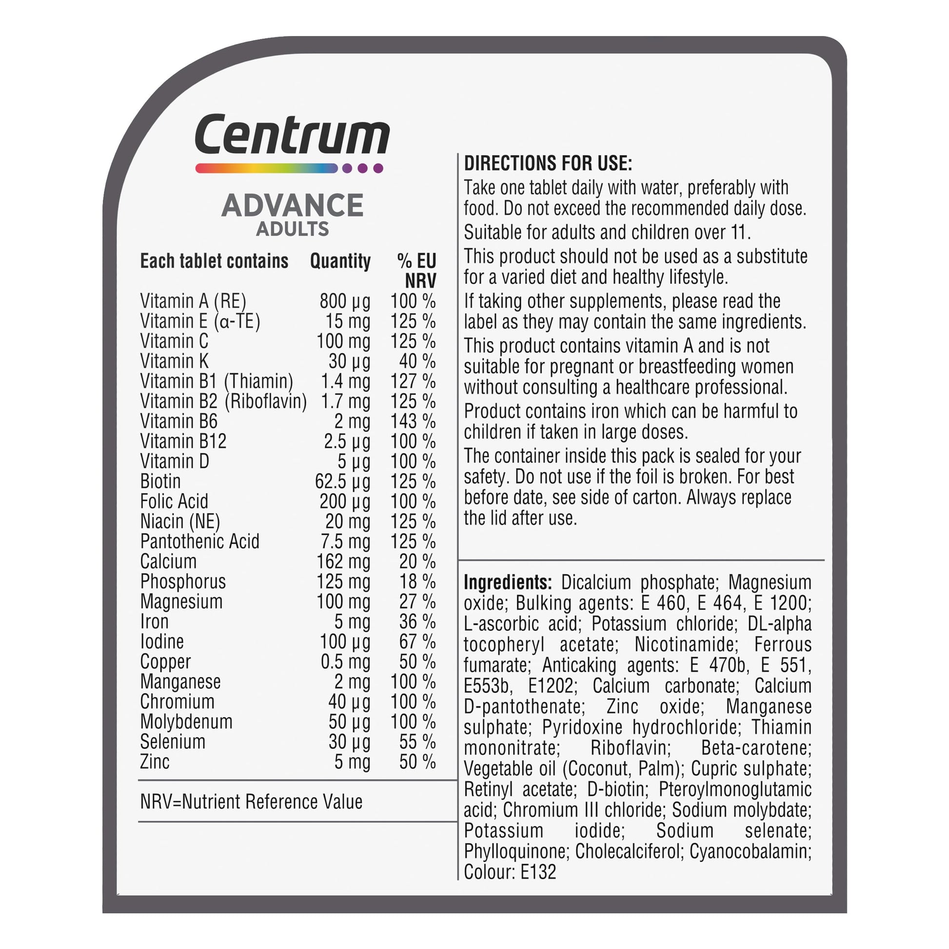 - Centrum Advance multivitamins are lactose, nuts, wheat and gluten-free.