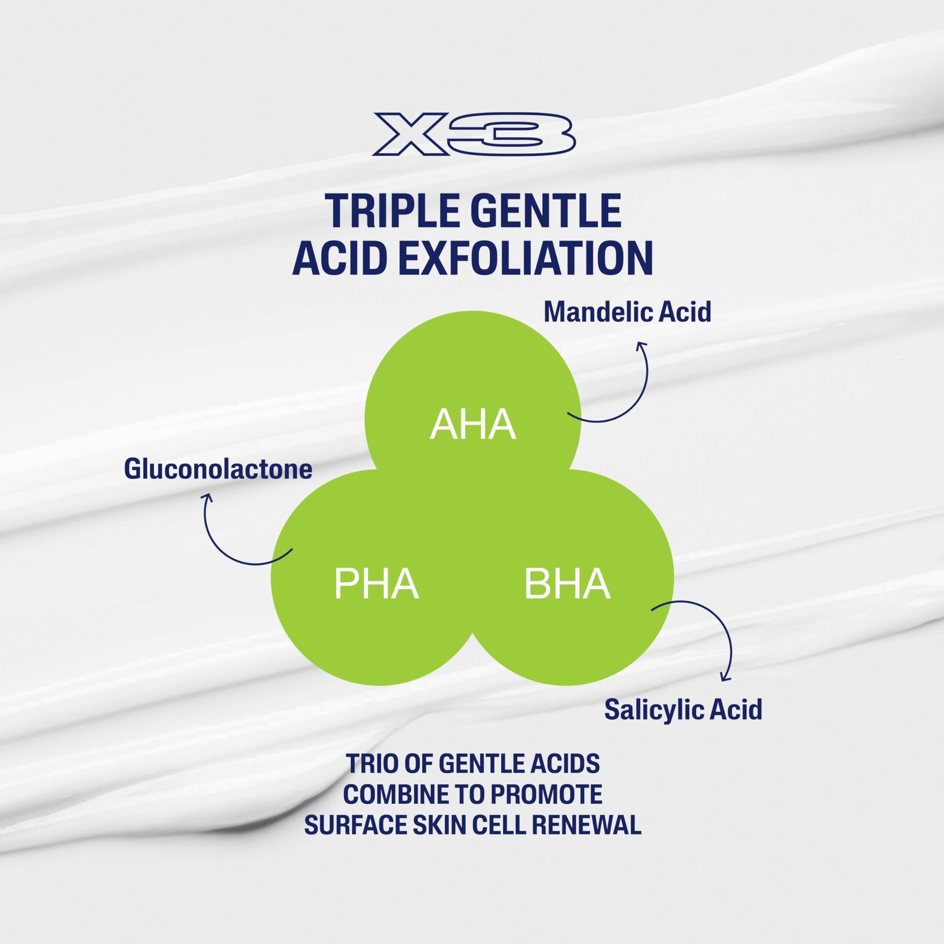 - Gentle Yet Powerful Triple Acid Exfoliation: Softer and smoother skin in one use with Cetaphil’s unique blend of Salicylic Acid, Mandelic Acid, and Gluconolactone blend.