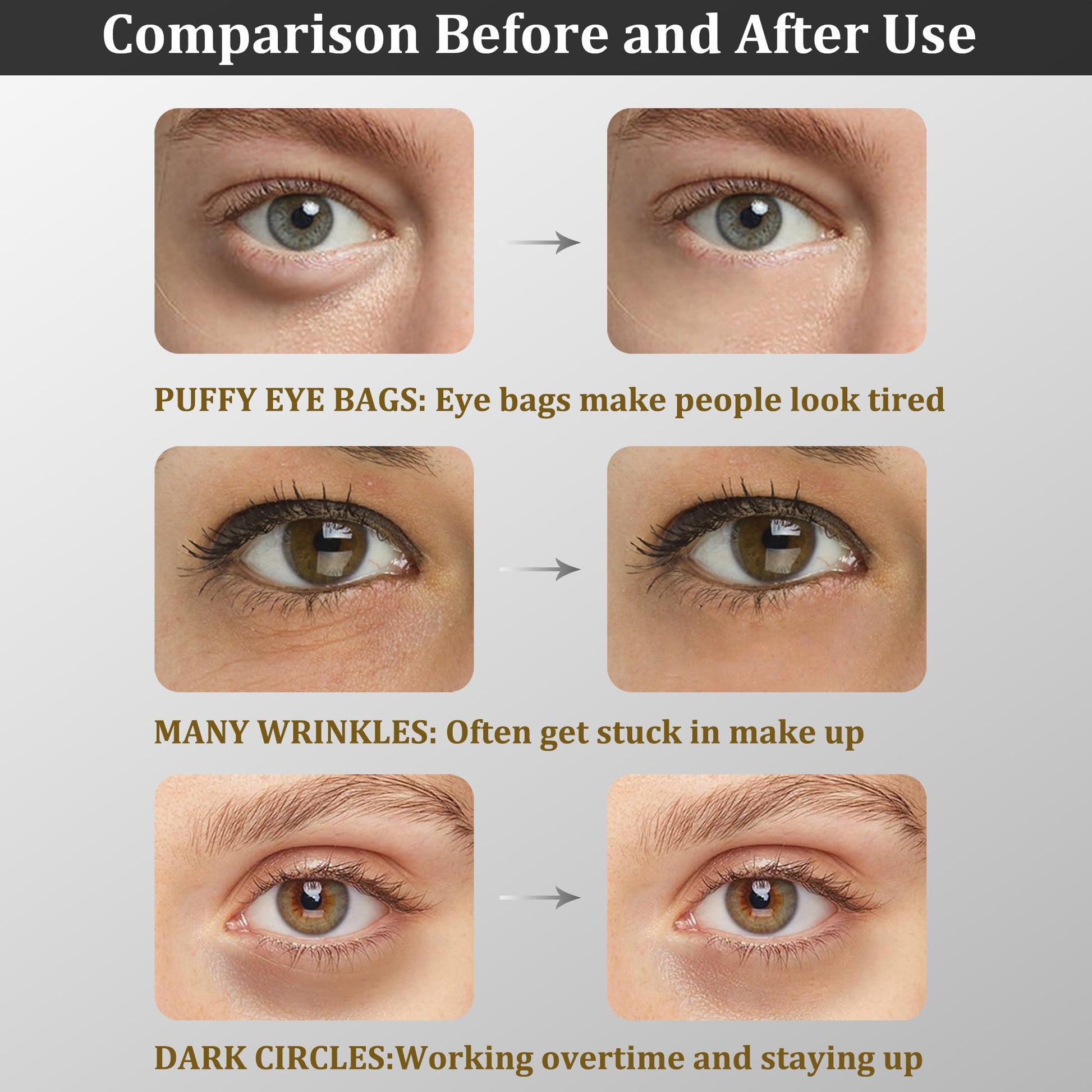 <p><p><b>Warm Prompt</b></p><p>1. In order to make the eye mask achieve better effect, please keep a calm posture all the time, avoid exercise and prevent the eye mask from falling off.</p><p>2. Apply a hot towel around the eyes to open pores and promote absorption, and the effect is better.</p><p>3. For external use only, please put the blindfold away from children.</p><p>4. When using this product for the first time, it is recommended to try it on the back of your hand first, and then apply it under your eyes if there is no adverse reaction. If there are any adverse reactions, stop using.</p><p>5. Moisten the skin around the eyes before using the eye mask. If the skin is severely dehydrated, it will be particularly sensitive to the high nutrients under the eye mask, causing skin tingling.</p><p>6. Avoid contact with eyes.</p><p>7. The best storage condition is room temperature 20℃. Don't store it in the refrigerator, or it will freeze.</p></p>