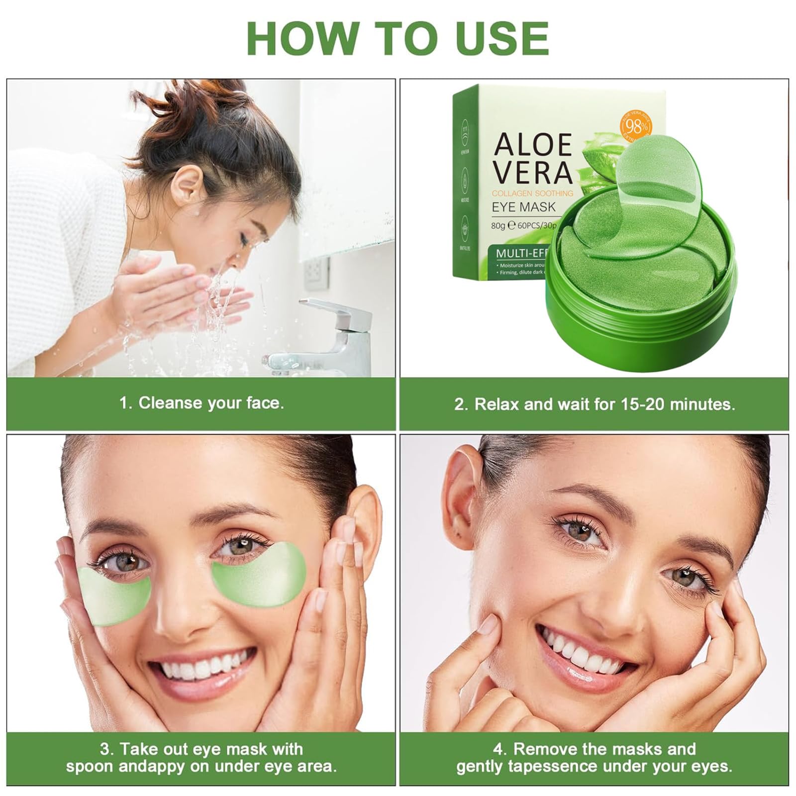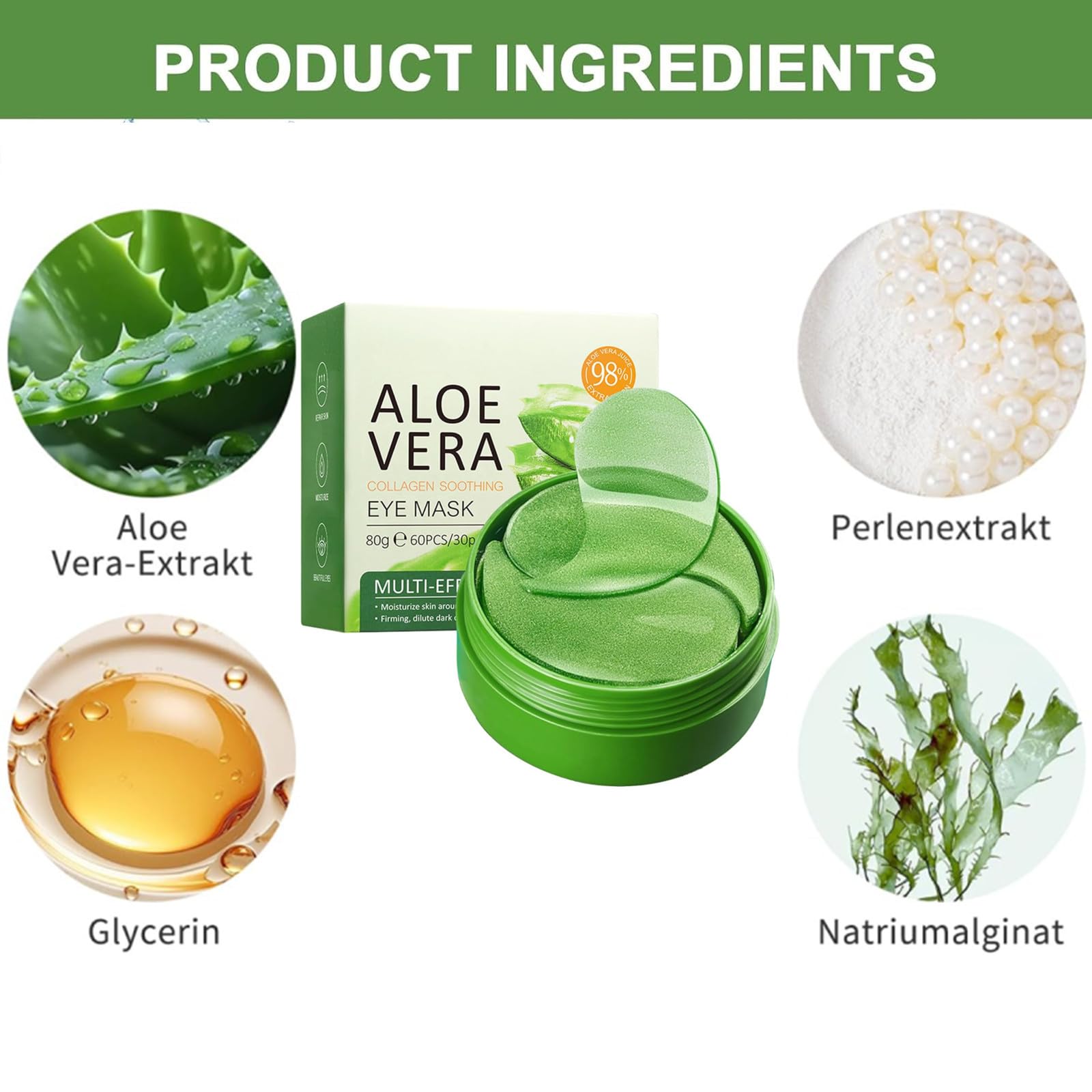 - Multi-effect Under Eye Patches: One aloe vera under eye patch solves all problems, affordable! Aloe Vera Extract, Propylene Glycol, Glycerin have the effect of hydrating and moisturizing; Sodium Hyaluronate can lock in moisture, repair your skin, anti-wrinkle, and make your skin look plump; other plant ingredients can effectively eliminate puffiness, smooth wrinkle, lighten dark circles and eye bags