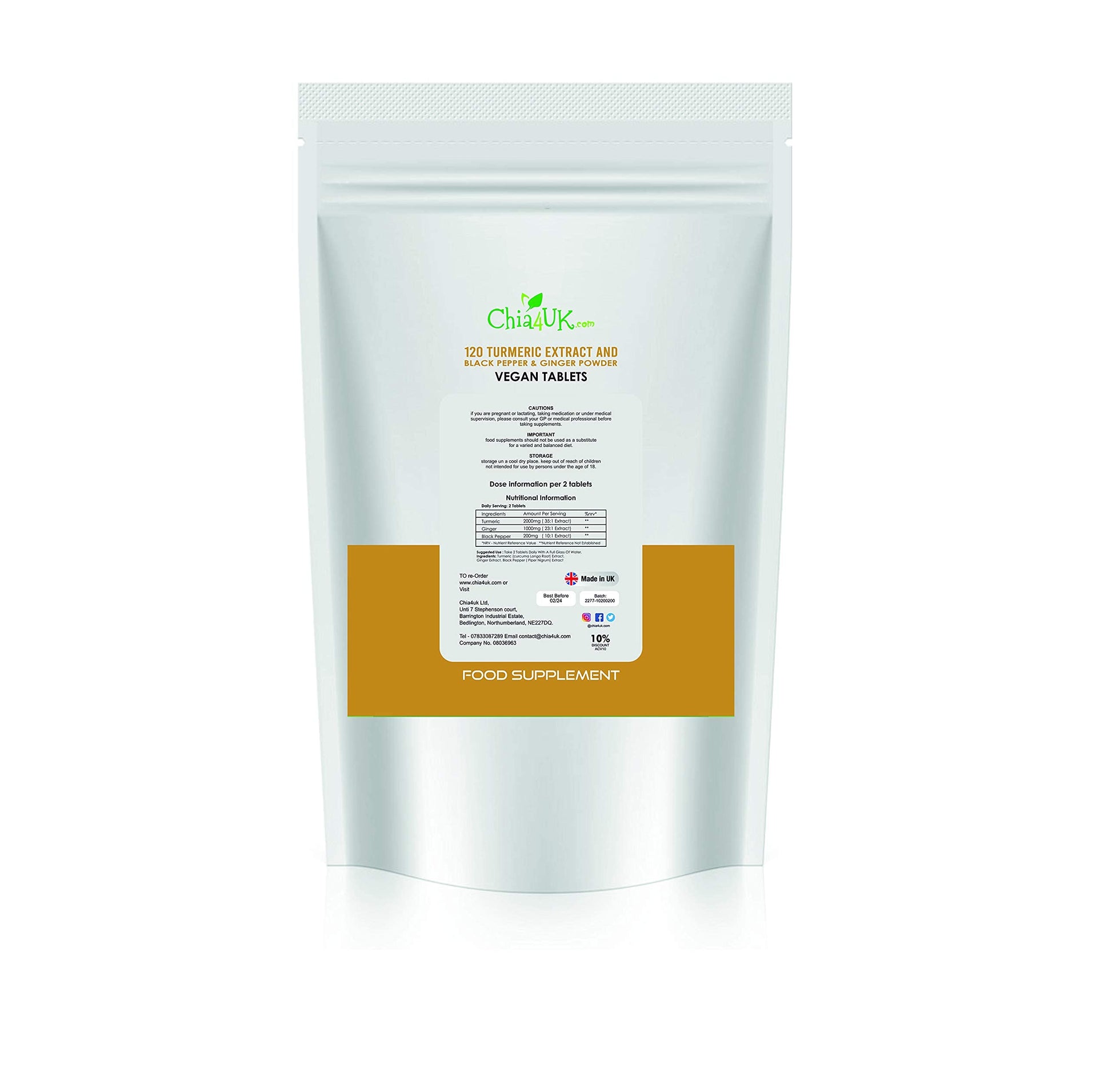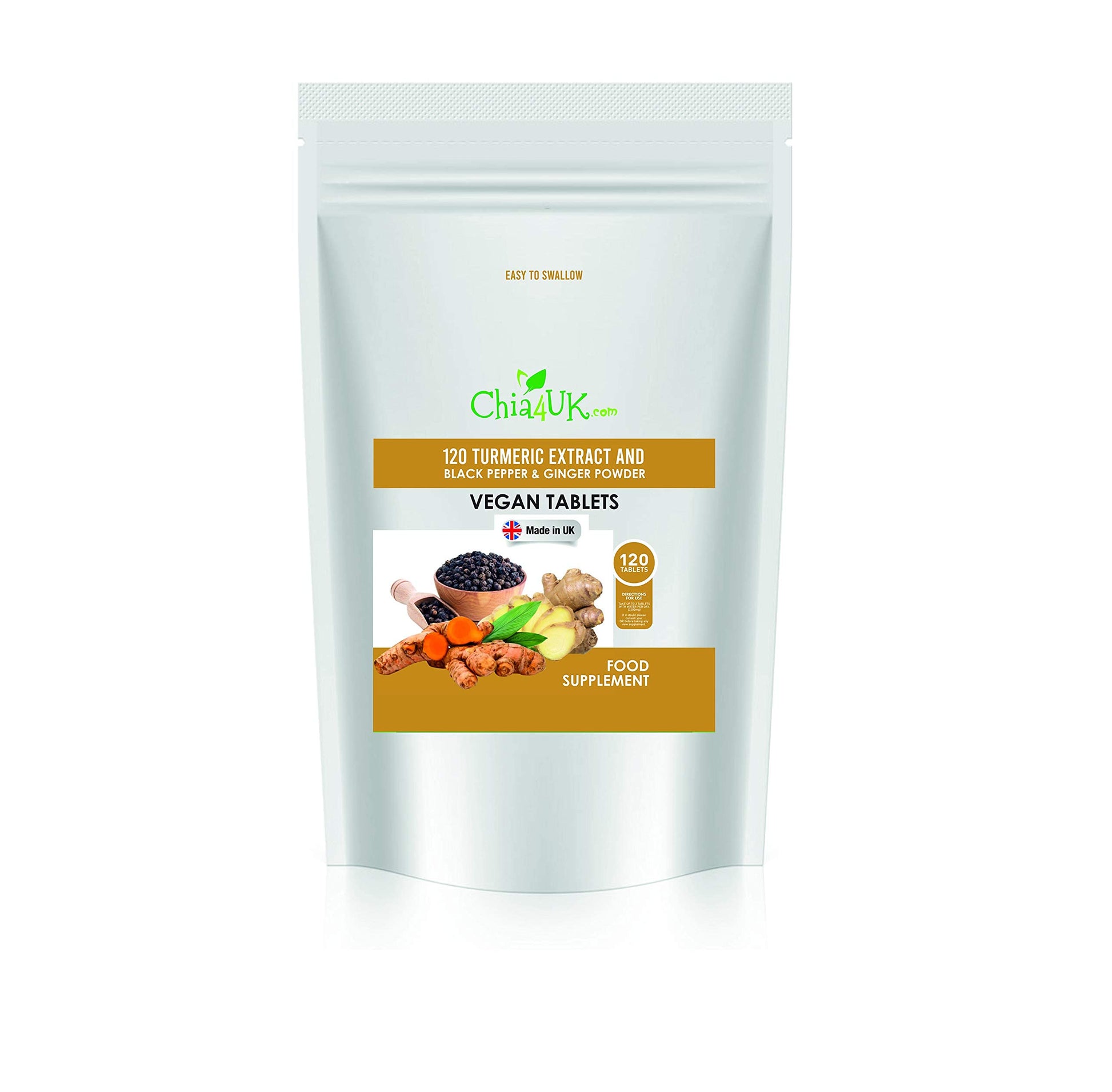chia4uk LTD Turmeric Tablets 2000mg with Black Pepper & Ginger | 120 High Strength Curcumin Supplements | Turmeric and Black Pepper Tablets| Vegan and Gluten Free | UK Made Supplement