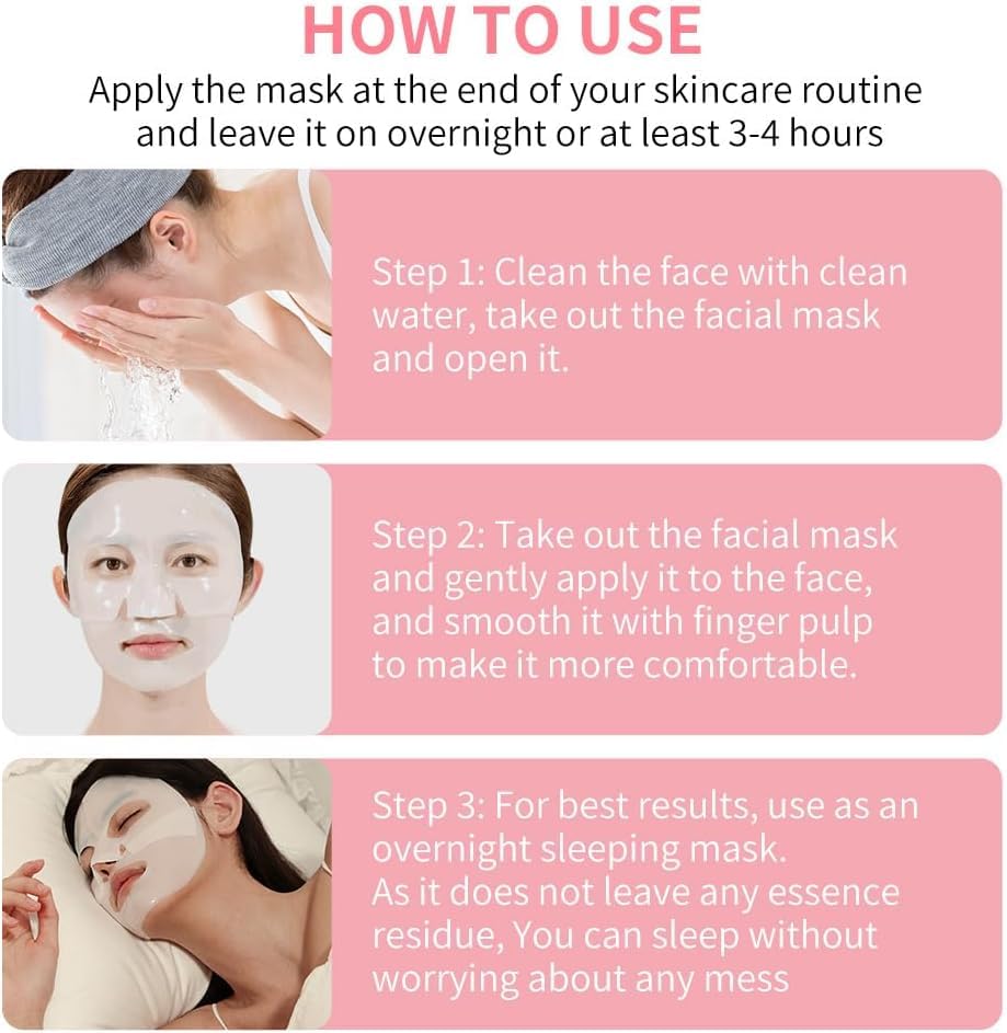 ③Leave the collagen sheet mask on overnight to allow the bio-collagen to deeply nourish and rejuvenate your skin.In the morning,remove the mask and gently massage any remaining serum into your skin.No need to rinse.