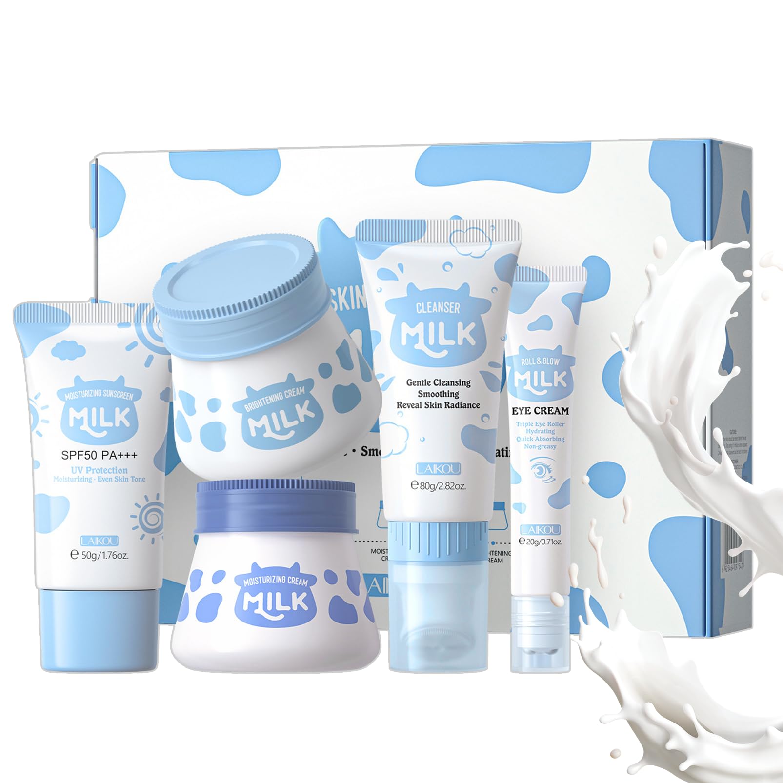 ChicNana skincare set, skin care sets & kits, milk skincare for kids Women Gift Set for Teenage Girls, with Sunscreen, Cleanser, Moisturizing Cream, Eye cream, Face Cream, Travel Kit (5pcs)