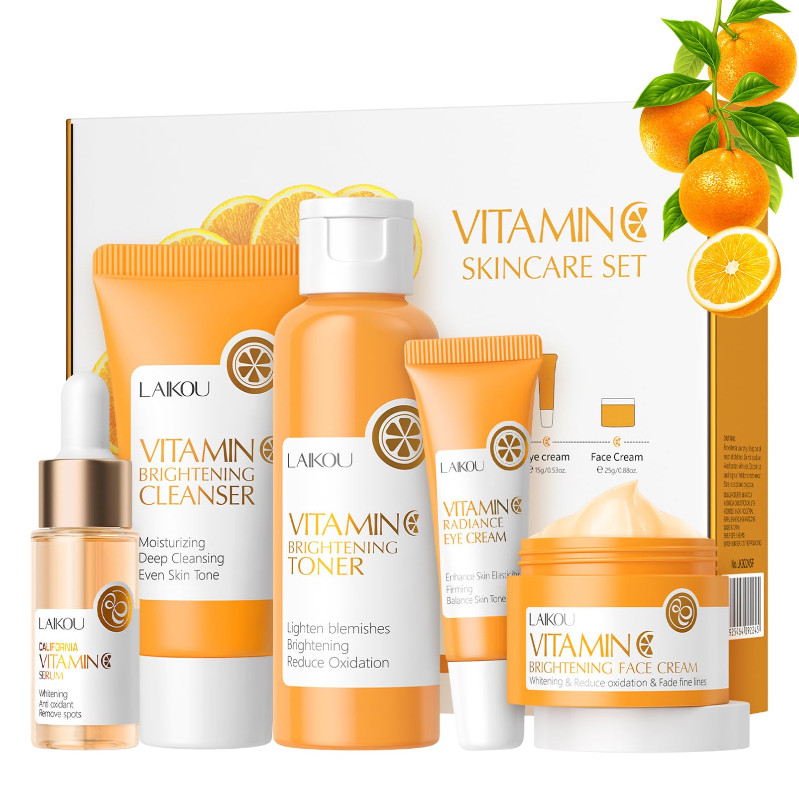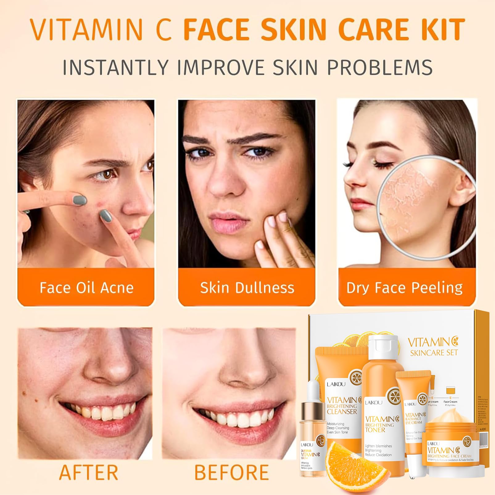 🍊VITAMIN C SKINCARE SET:Vitamin C Facial Care Set Face Cleanser Fade Dark Circles Eye Cream Essence Lighten Spots VC Brighten Anti Aging Facial Skin Care Set Beauty Skin Care Products