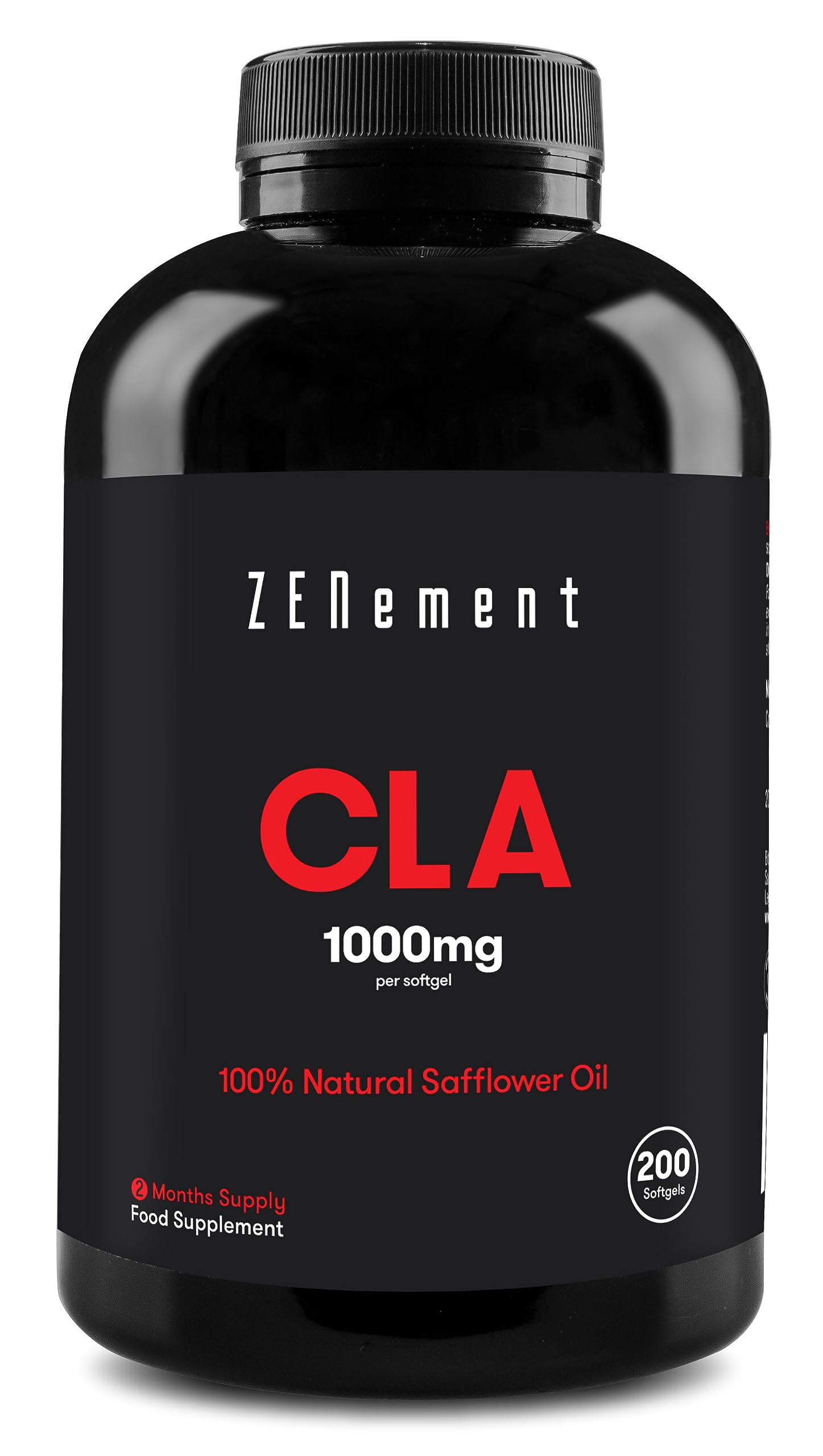 CLA 3000mg (3 softgels), 100% Natural Safflower Oil, 200 Softgels | Gluten Free, Non-GMO | Zenement