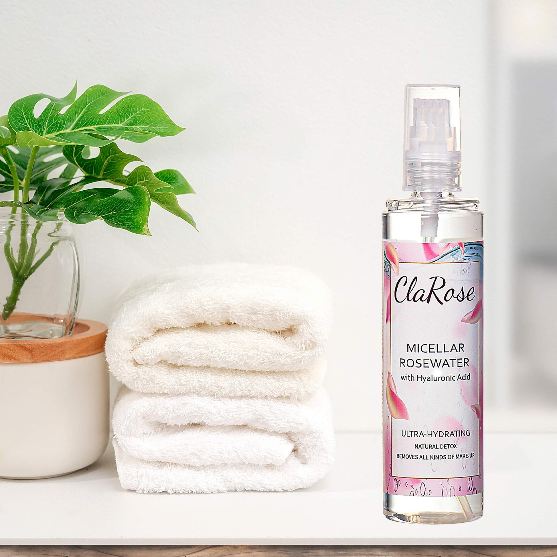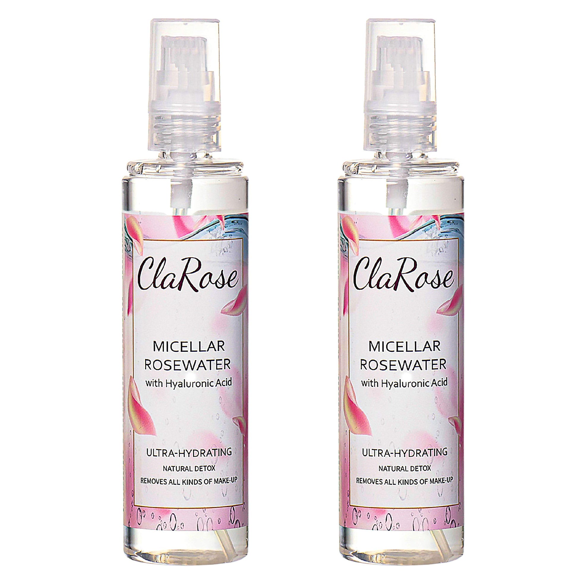 ClaRose Micellar Water with Hyaluronic Acid and 100% Natural Vegan Rosewater, 300 ml, (Pack of 2)